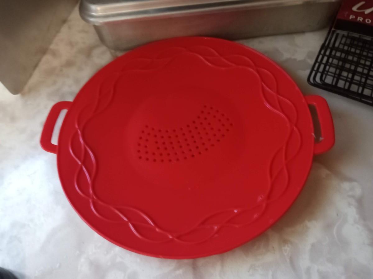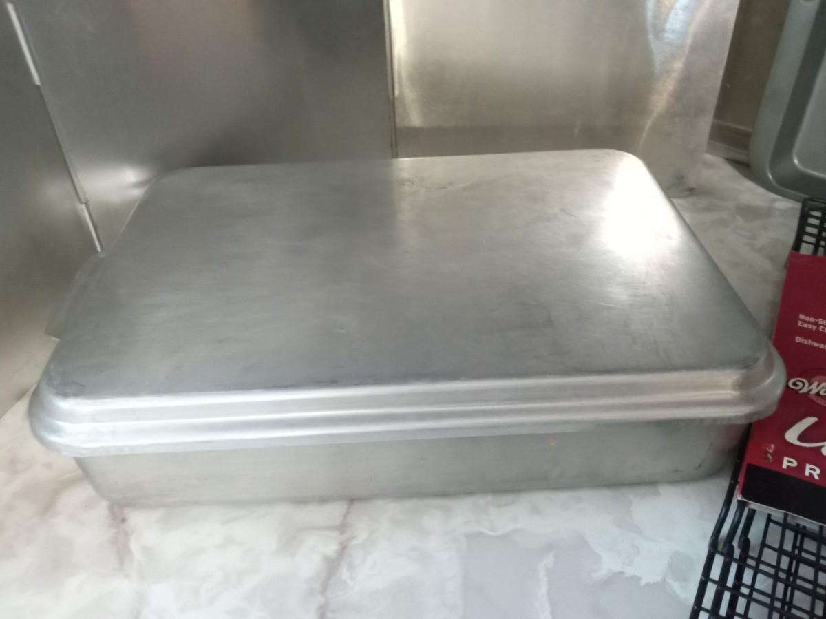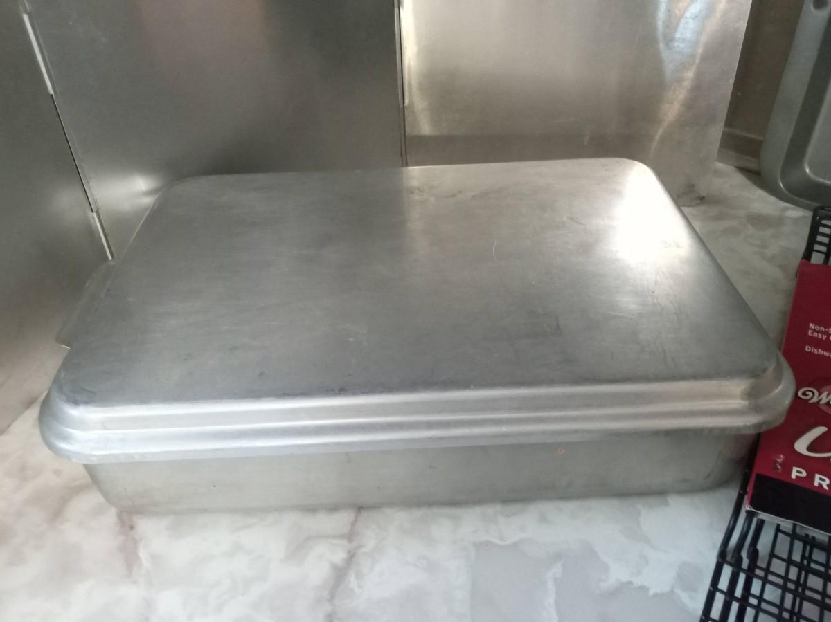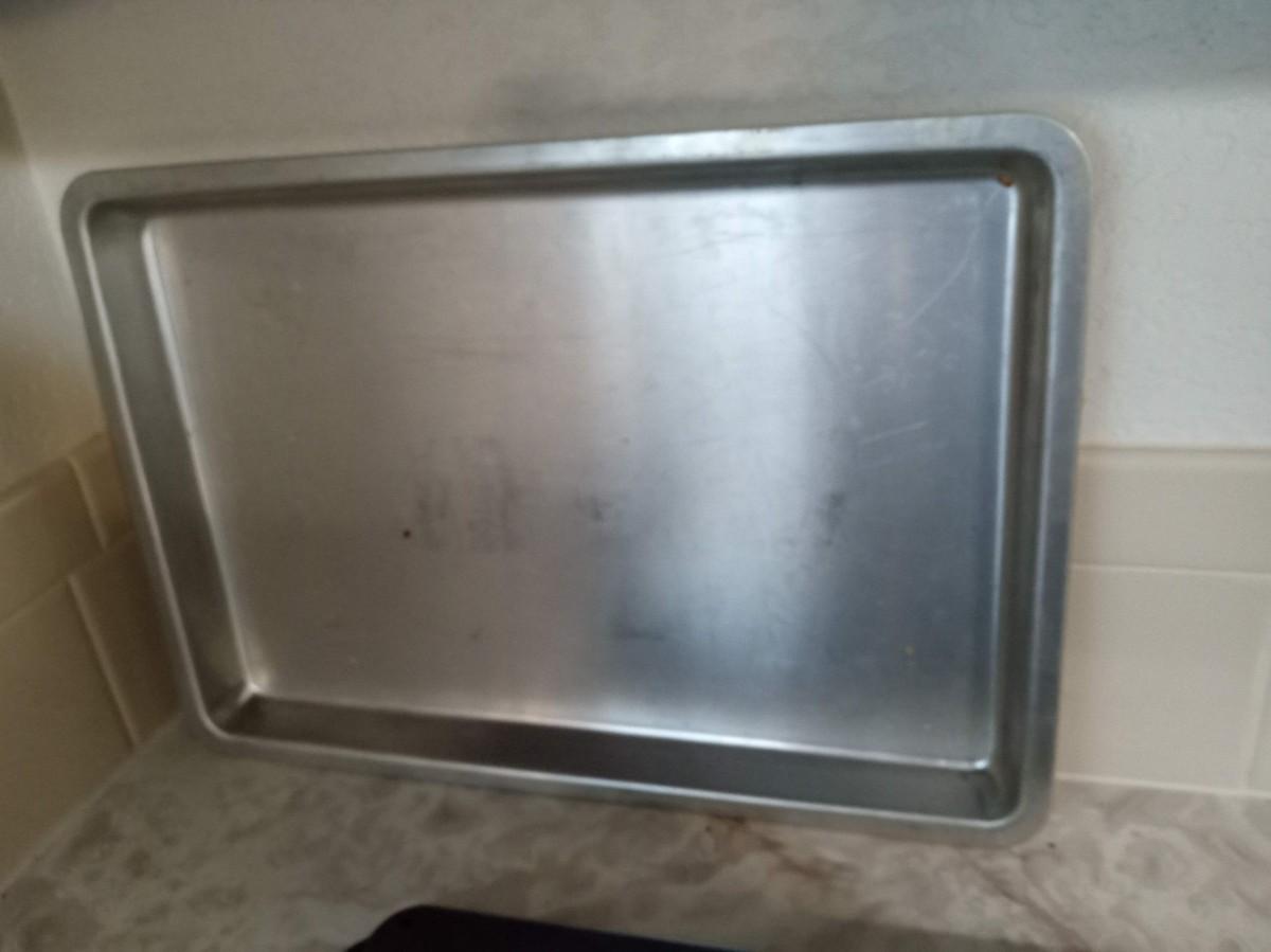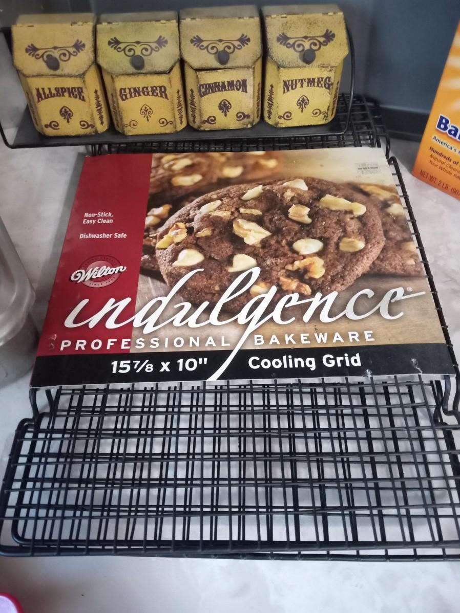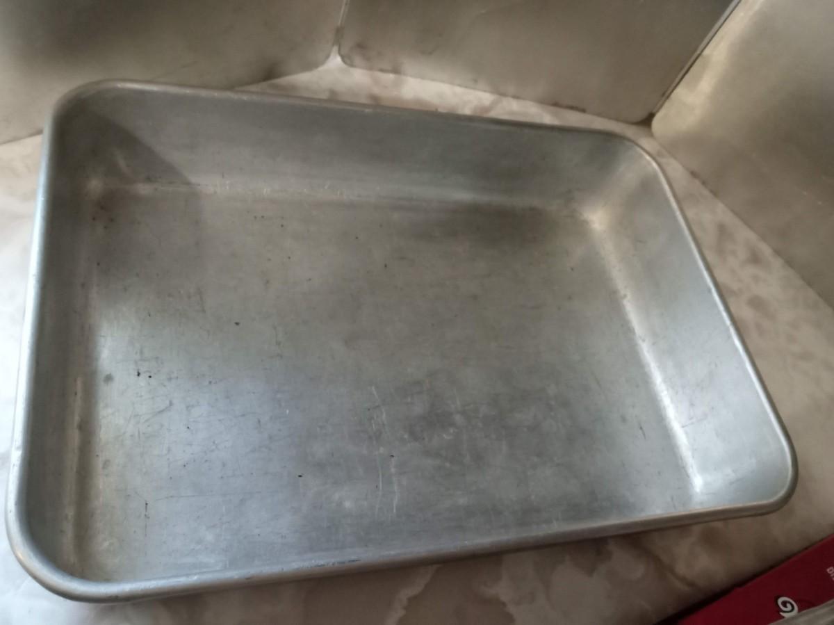 TIN SPICE HOLDERS, COOLING RACKS, COOKIE SHEETS, CAKE PAN WITH LID, LOAF PANS, RUBBER PIZZA PAN AND SOME BAKING SODA