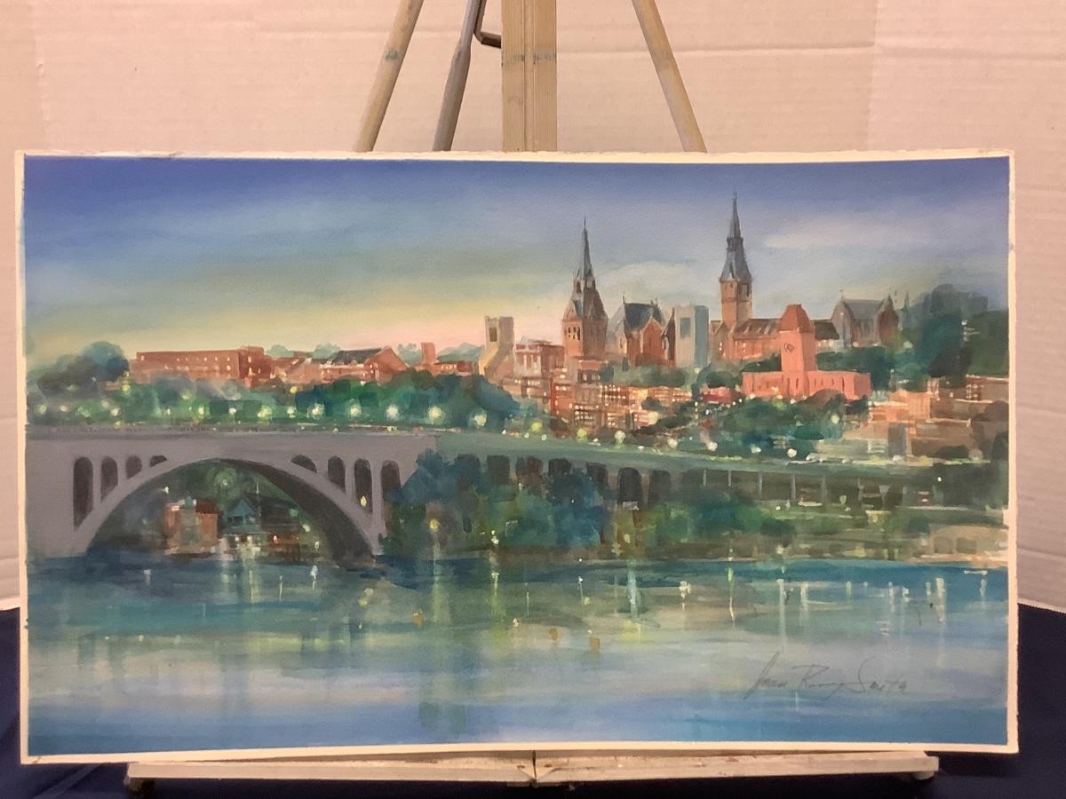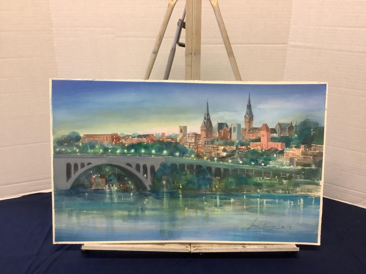 Signed Original Watercolor Painting by Jean Ranney Smith “ Evening Bridge Scene “