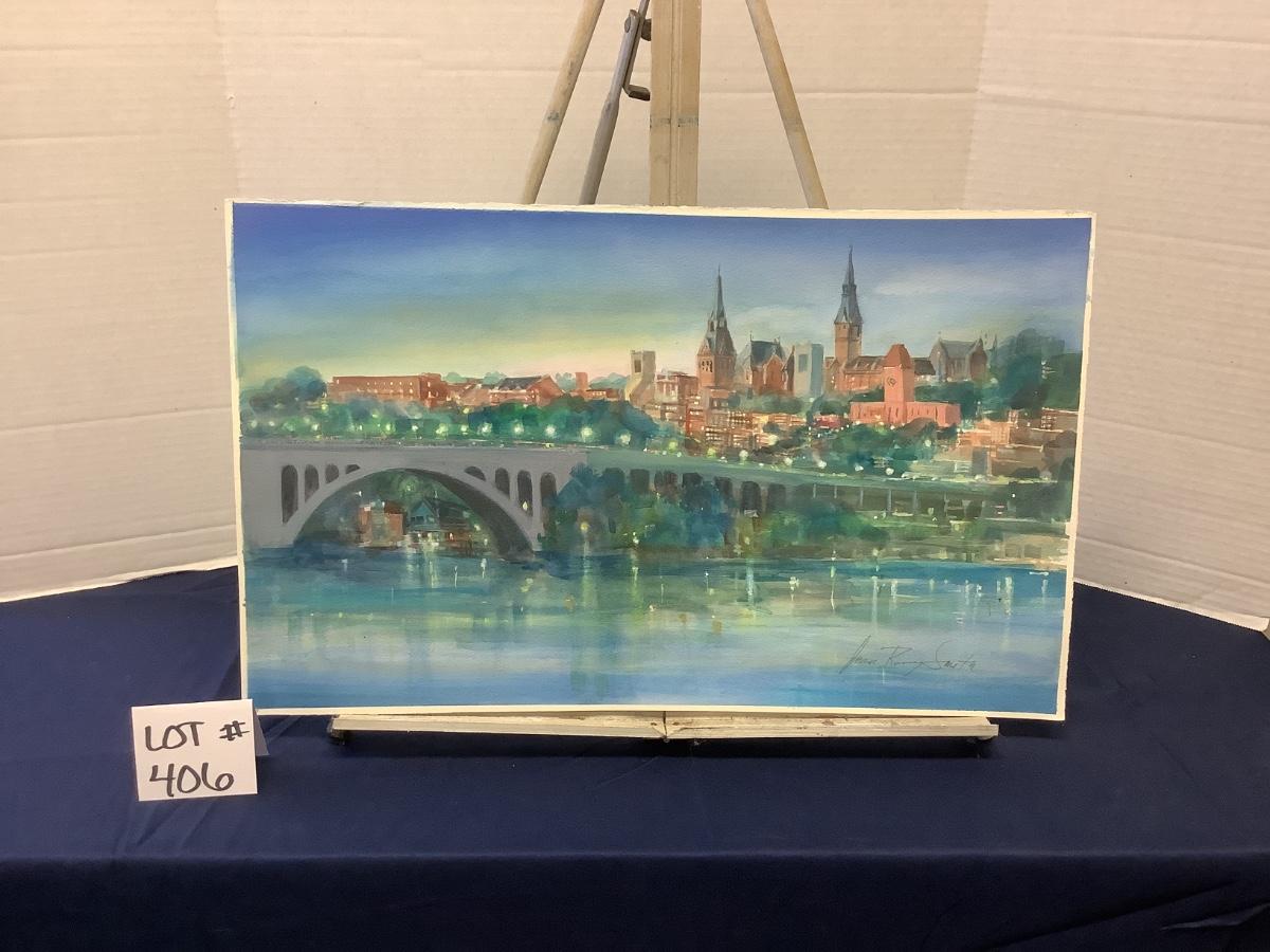 E - 406 Signed Original Watercolor Painting by Jean Ranney Smith “ Evening Bridge Scene “