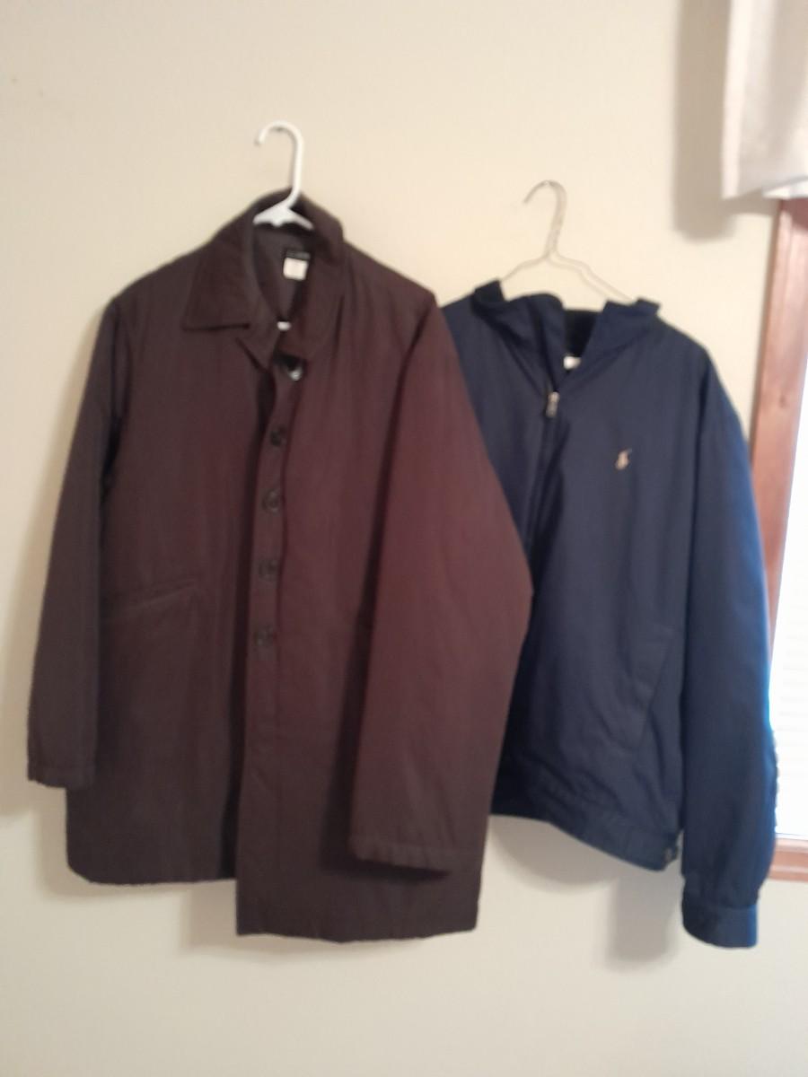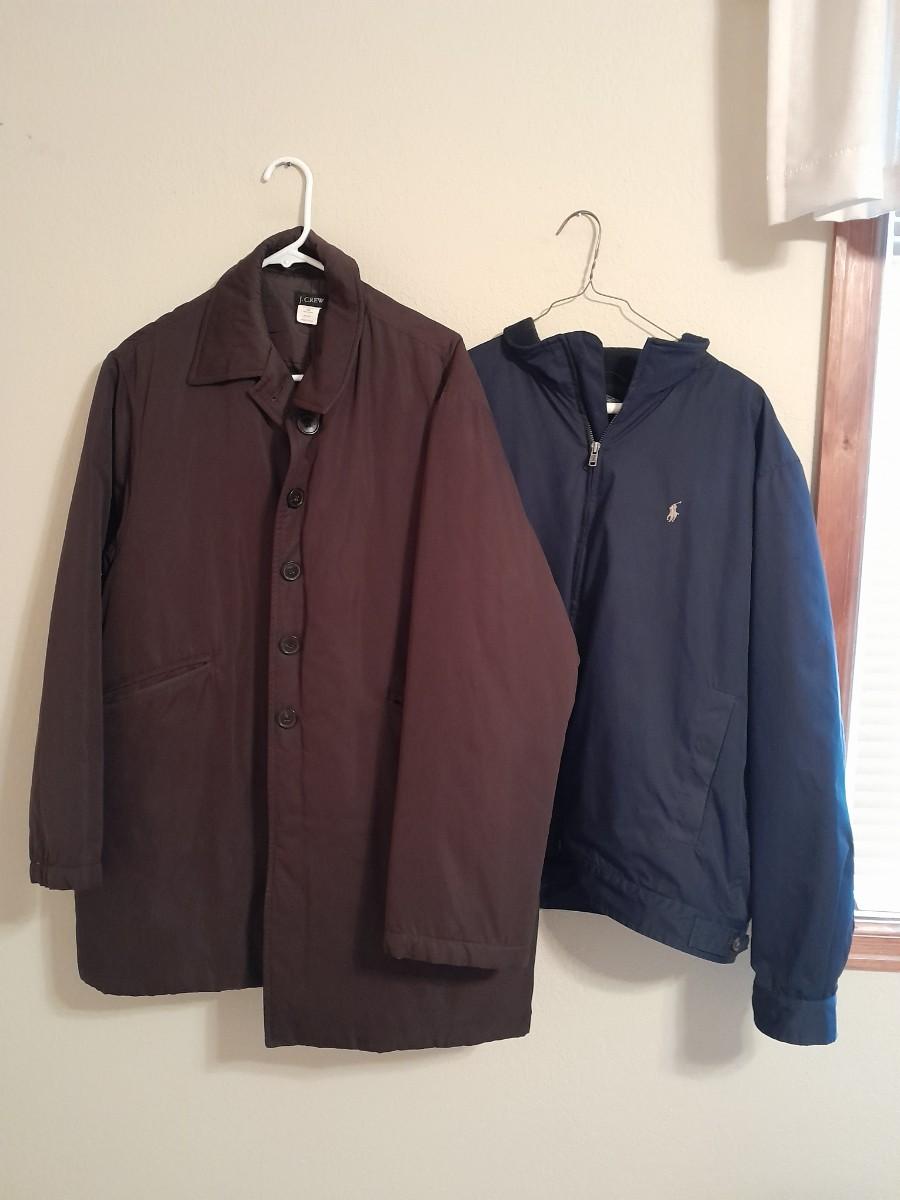TWO WINTER COATS, POLO BY RALPH LAUREN SIZE LARGE, AND J. CREW NO SIZE