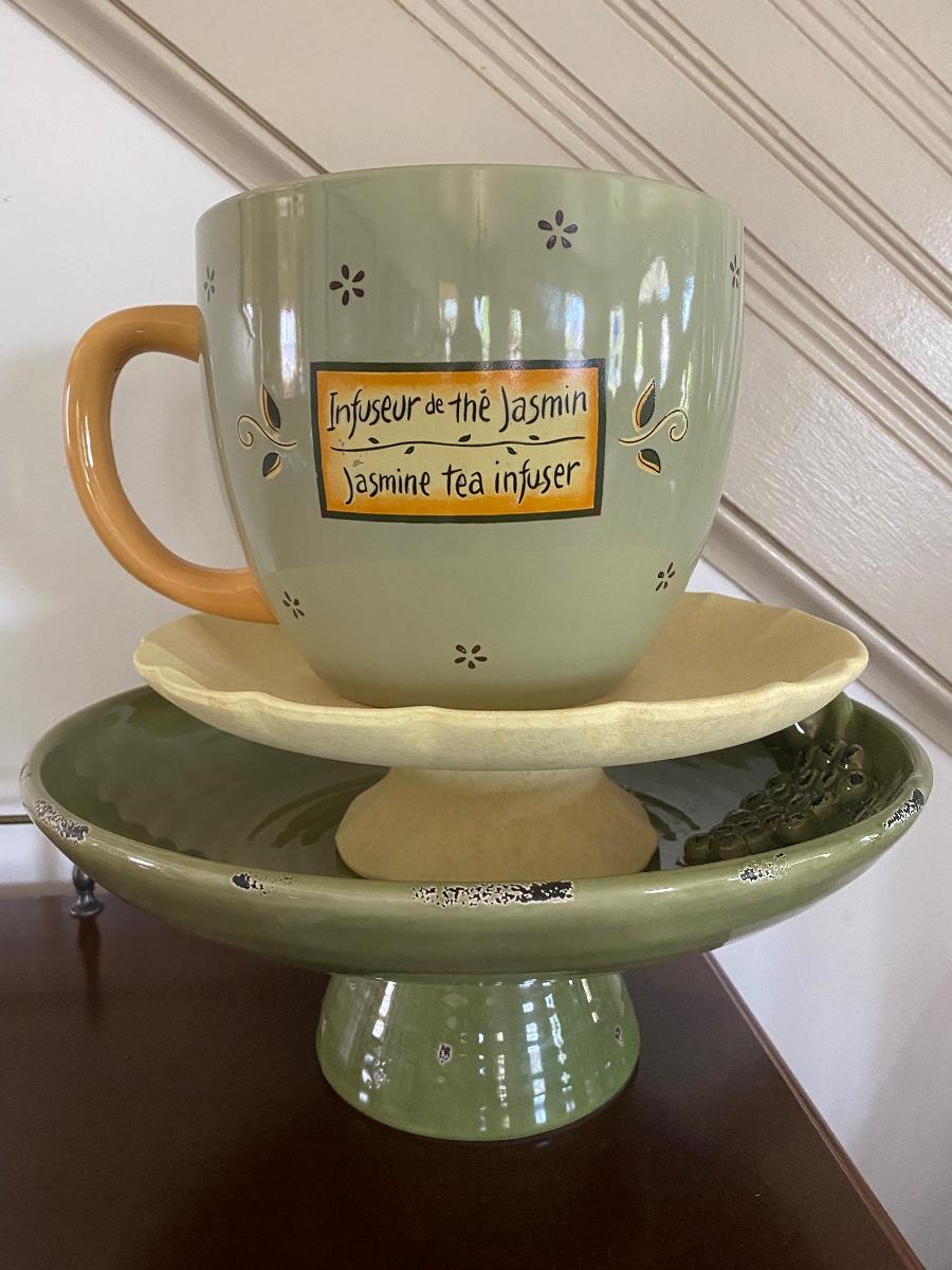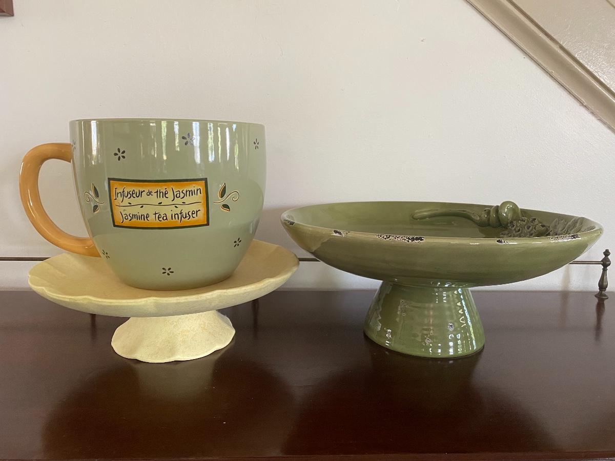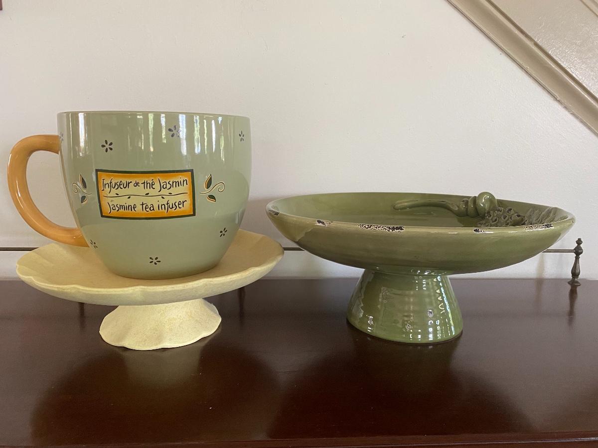 Lot 407: Large Mug & Two pedestal desert Dishes