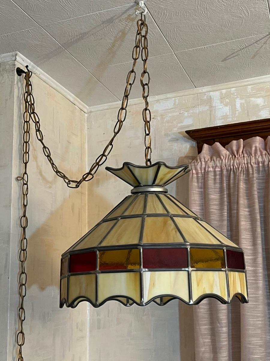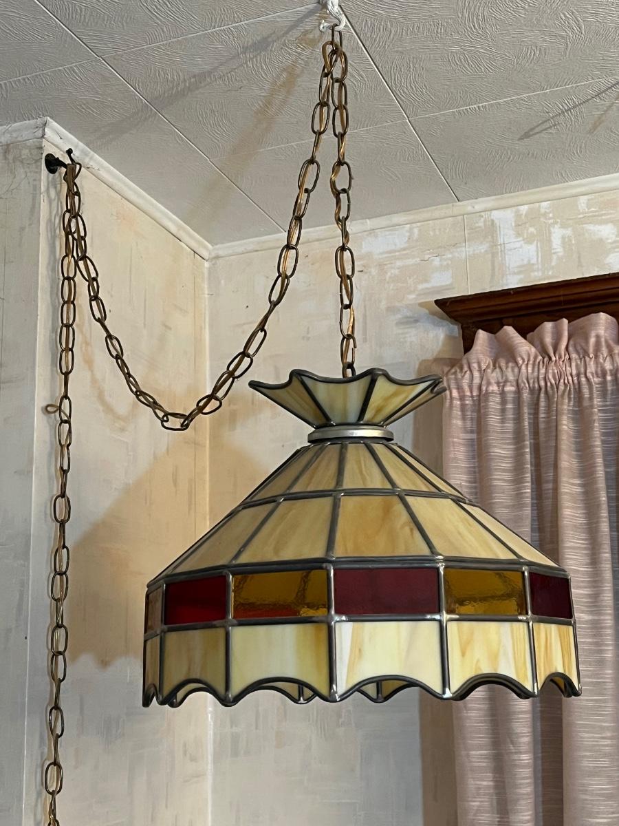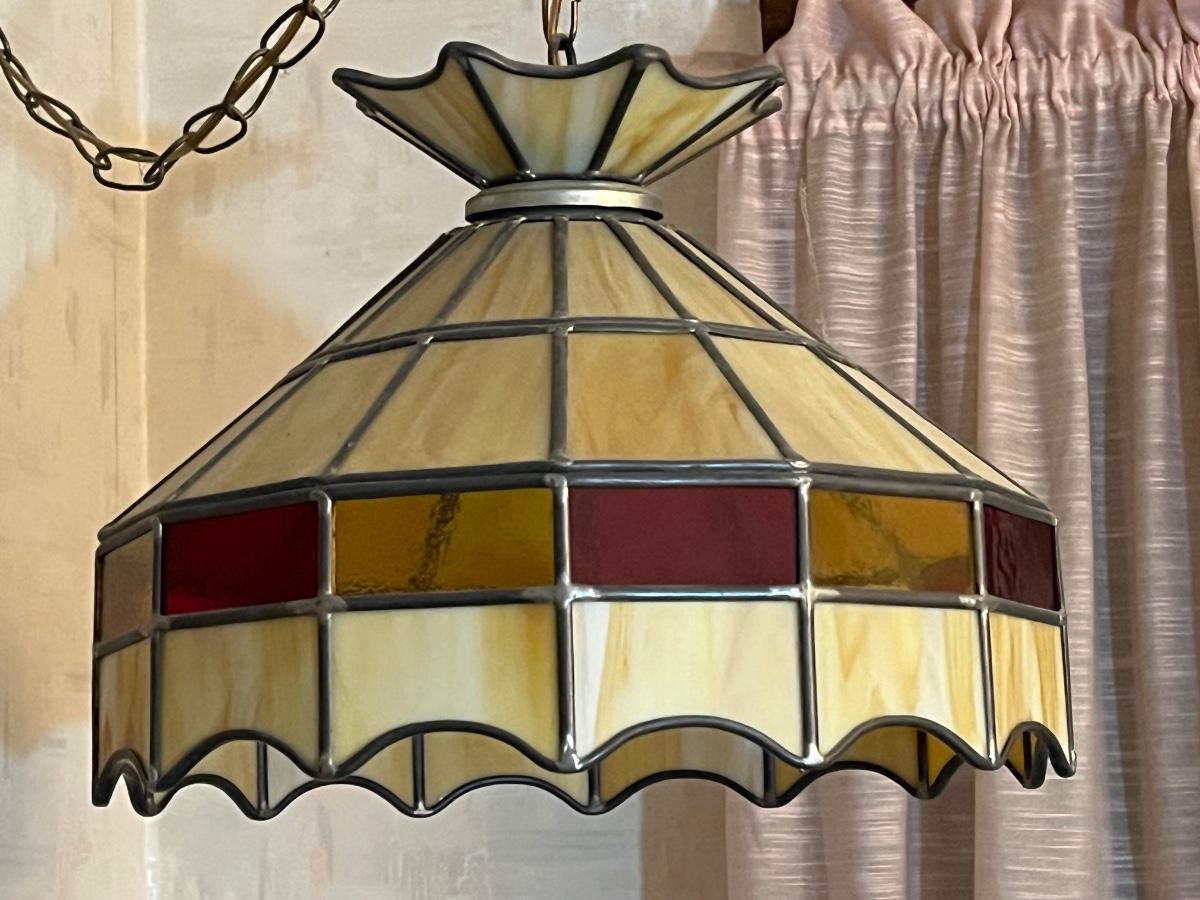 LOT 408X: Vintage Glass Plug-in Hanging Lamp