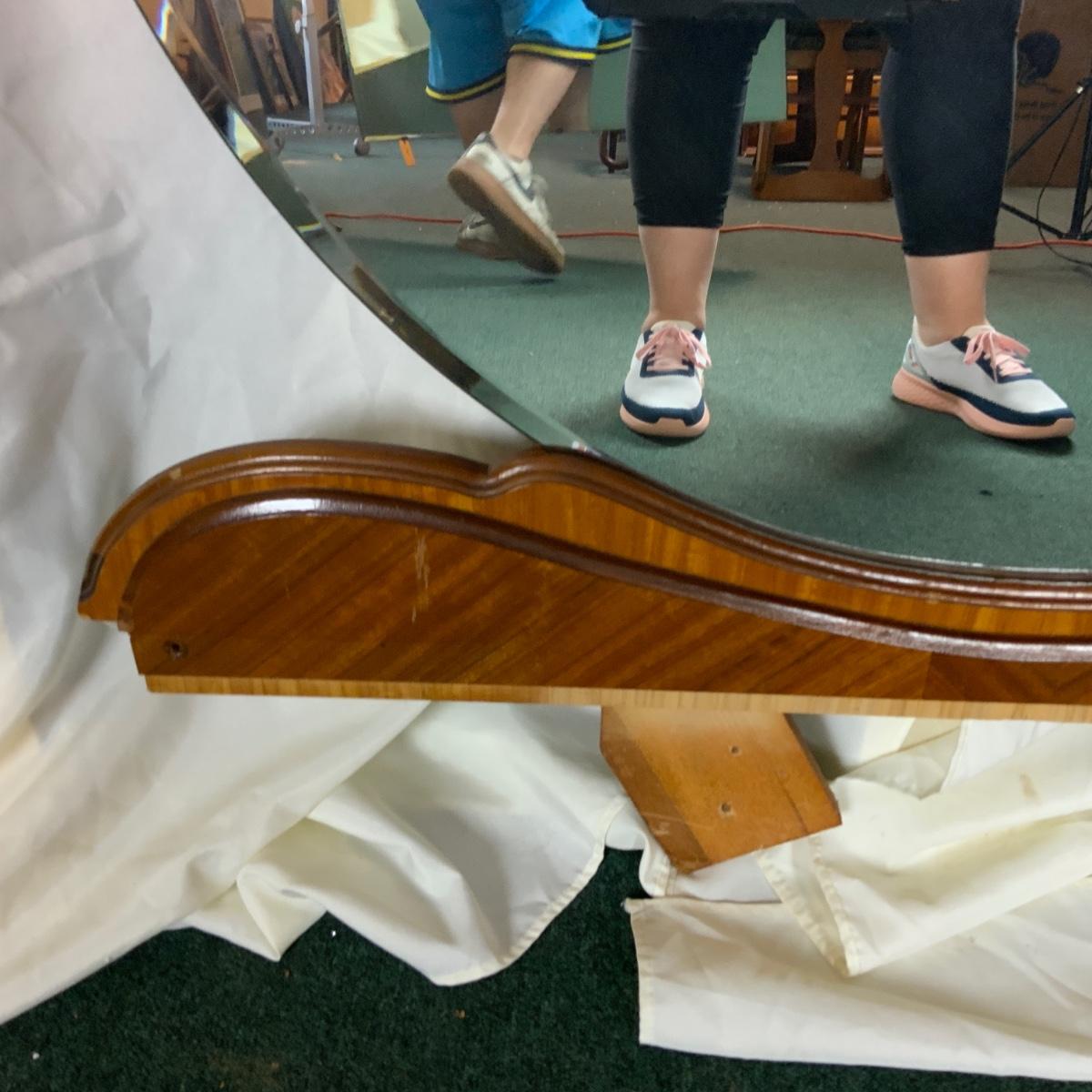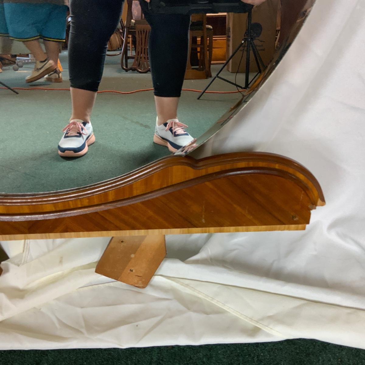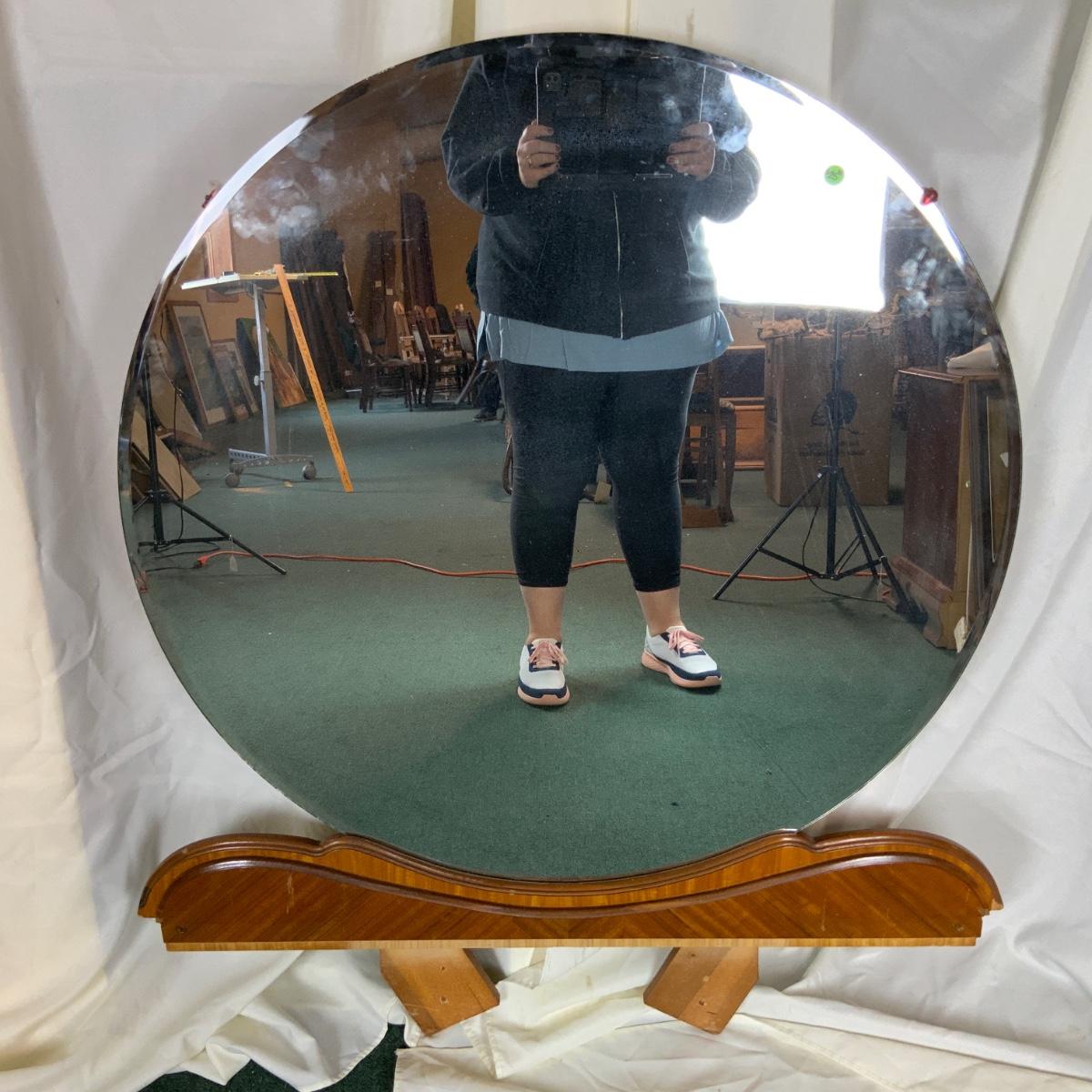 Art Deco Vanity Mirror. Nice round mirror. I love the reflection the most. //::\\ Please see photos for details and condition. No attempt has been made to hide any imperfections. All items listed in this auction are warehouse items, and need to be cleaned. A majority of the items need restoration as well. All items are sold AS IS and WITHOUT GUARANTEE. If you are uncertain about an item, DO NOT BID. Due to the nature of this online auction in-person inspection is HIGHLY recommended. All Sales are FINAL. Pick Up Times are FIRM. Please confirm with your own schedule that you can pick up in the scheduled times listed in the Terms and Conditions. Any questions please message the auctioneer. DO NOT Contact The Harp Gallery.