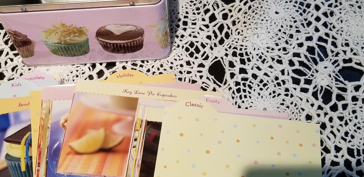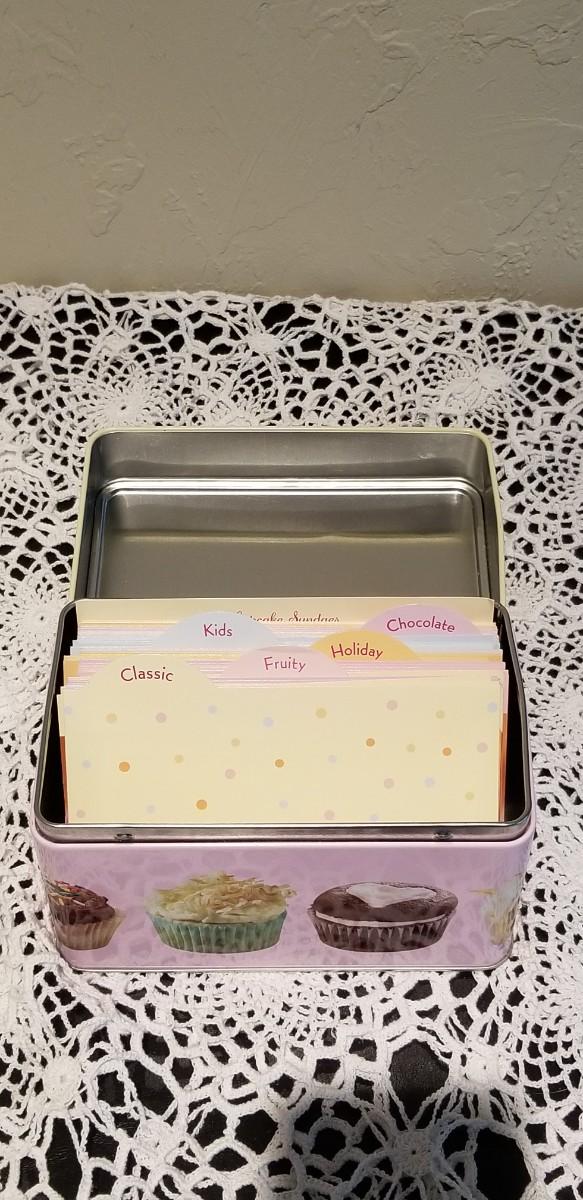 Lot 408: Cupcake Recipe box filled with Cupcake Recipes