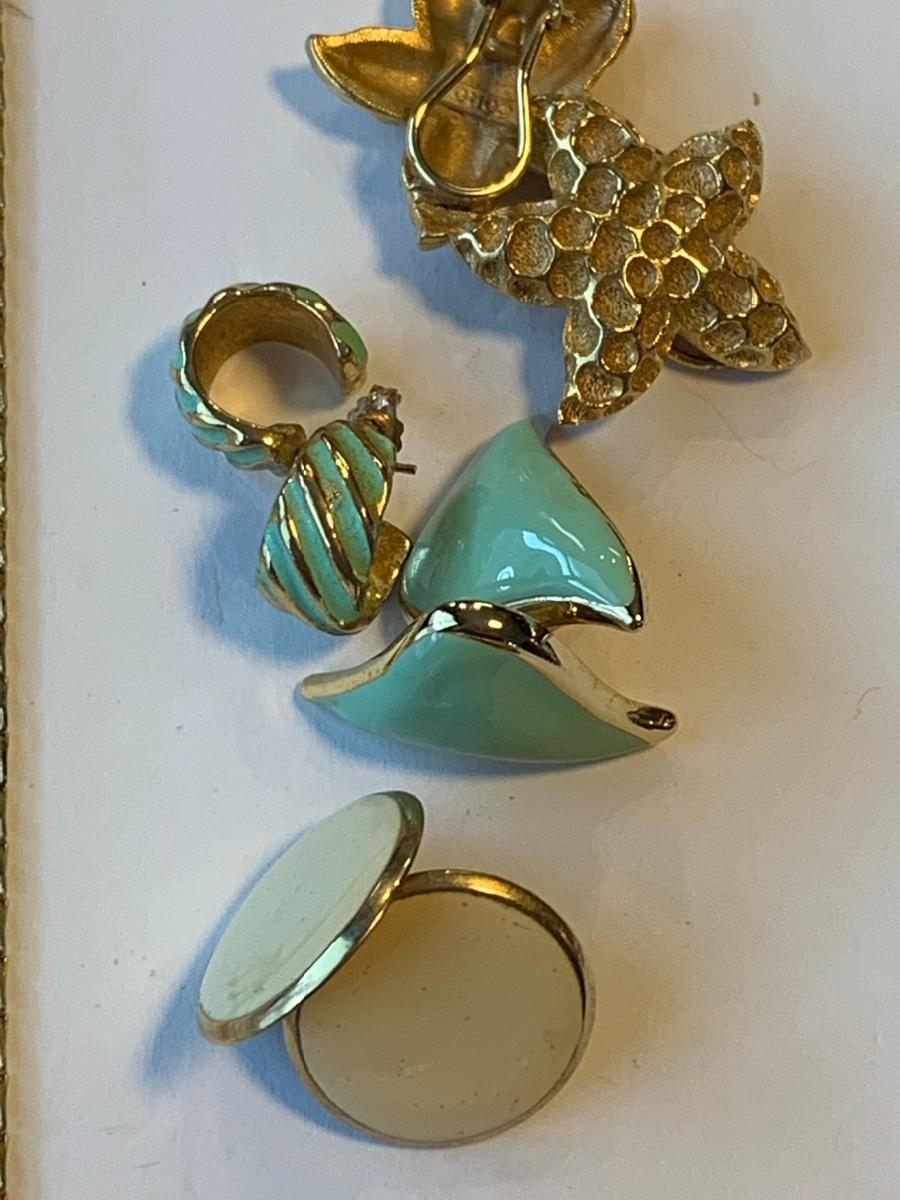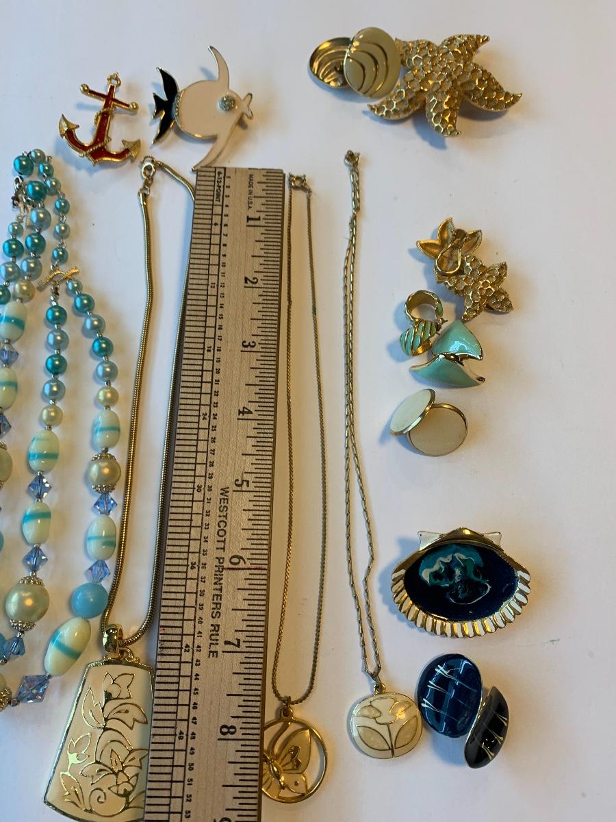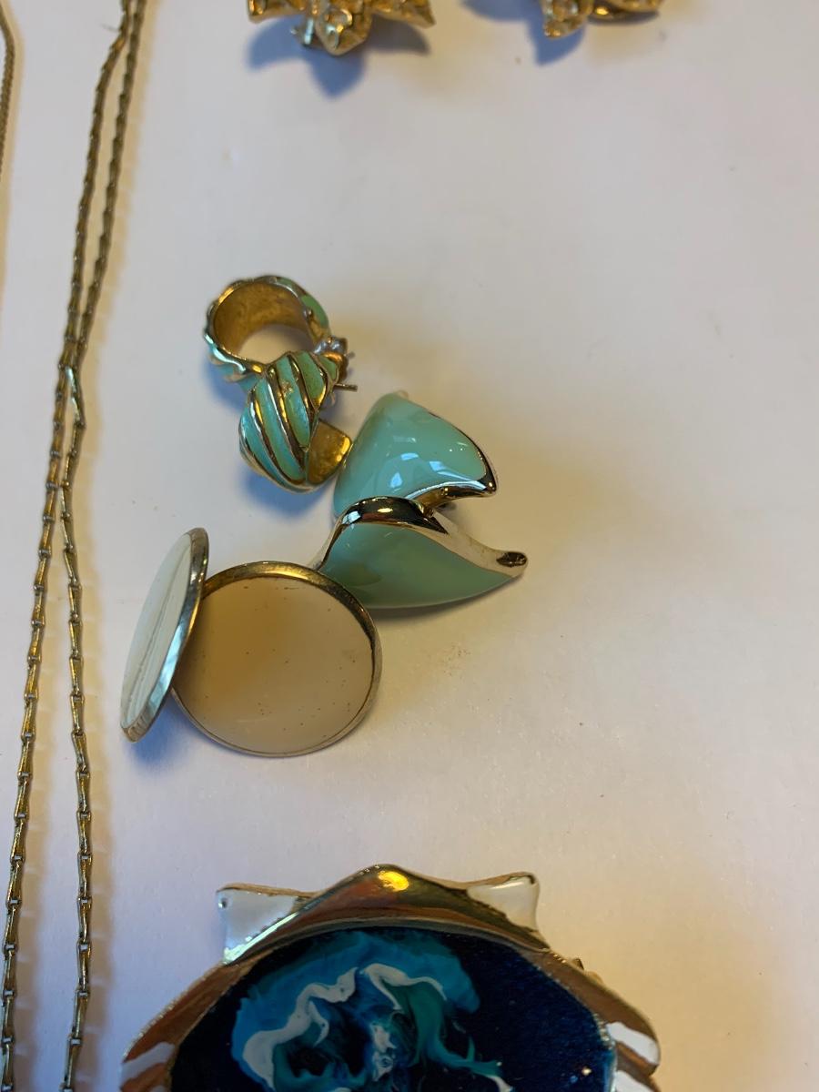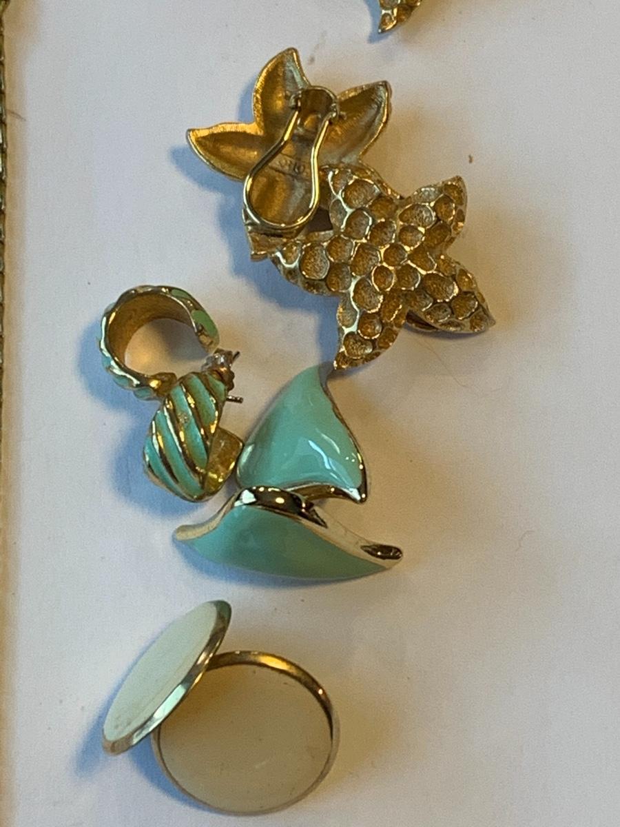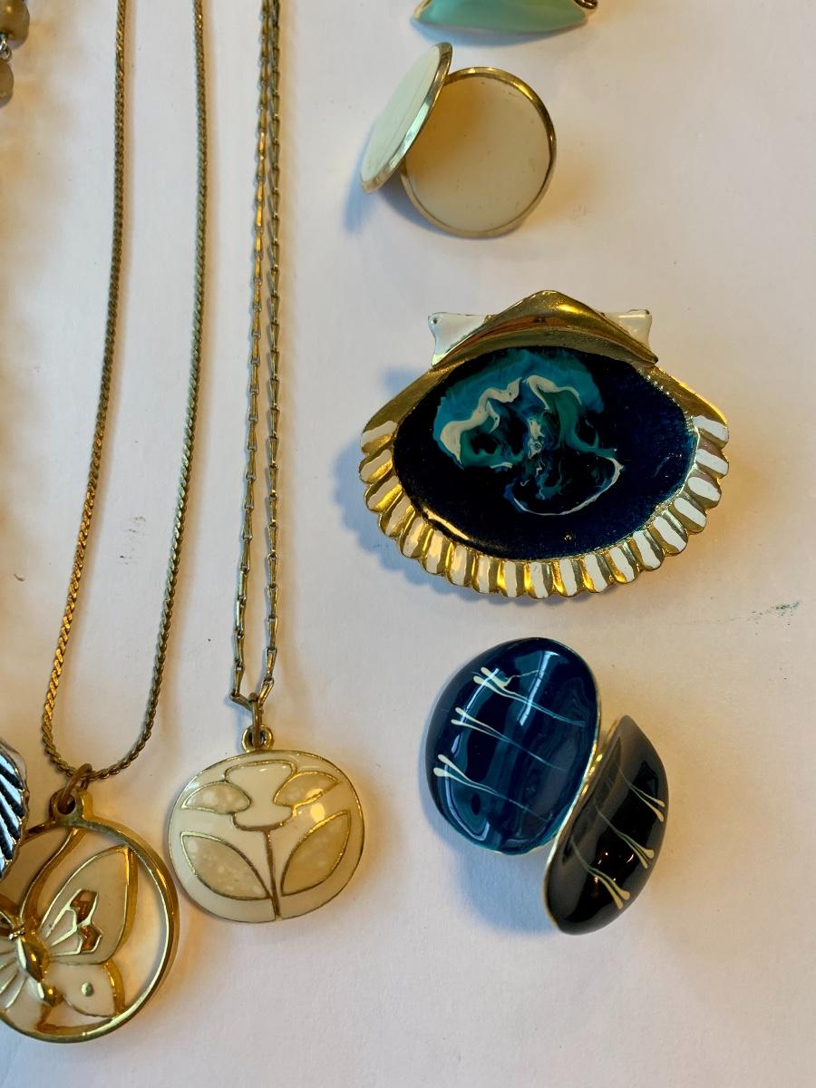 Beads, Enamel, Rhinestones are all included in this lot of wearable jewels .