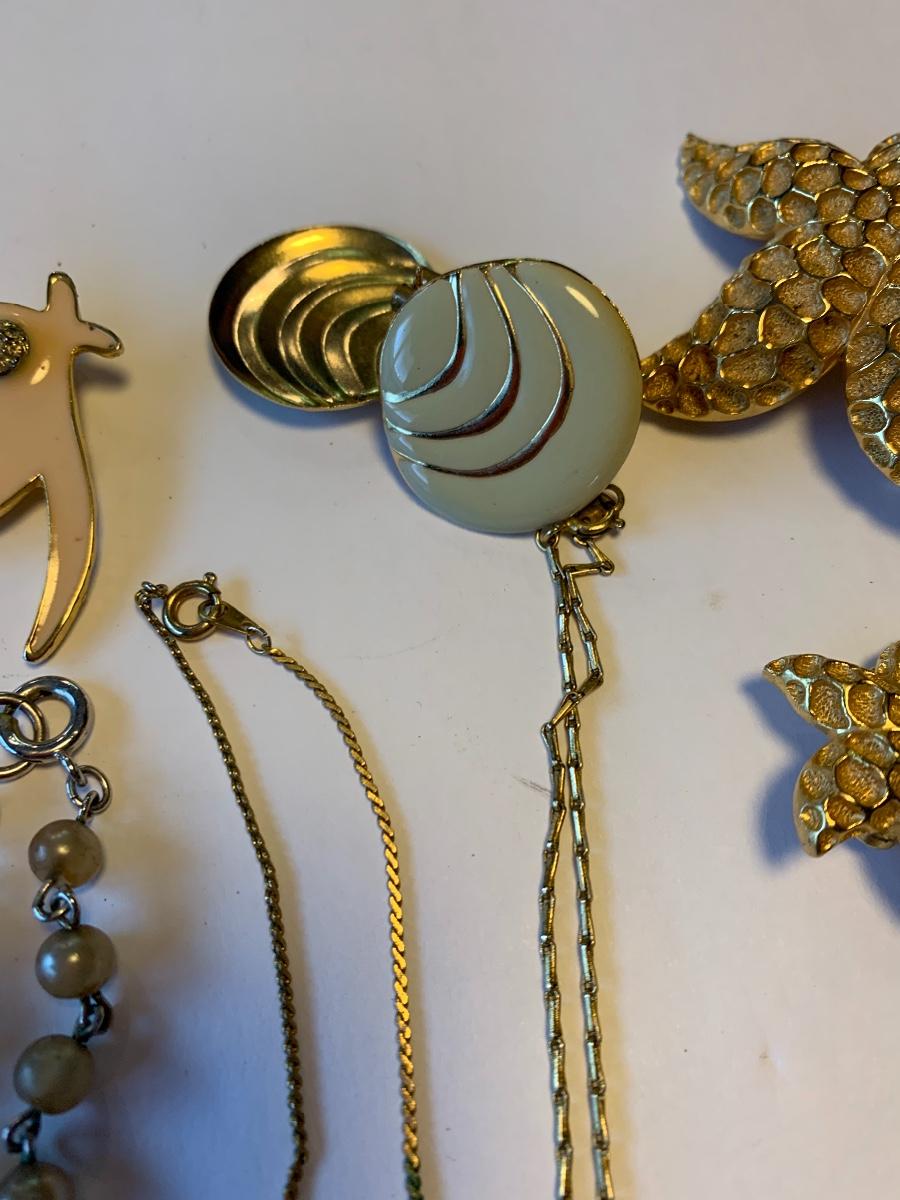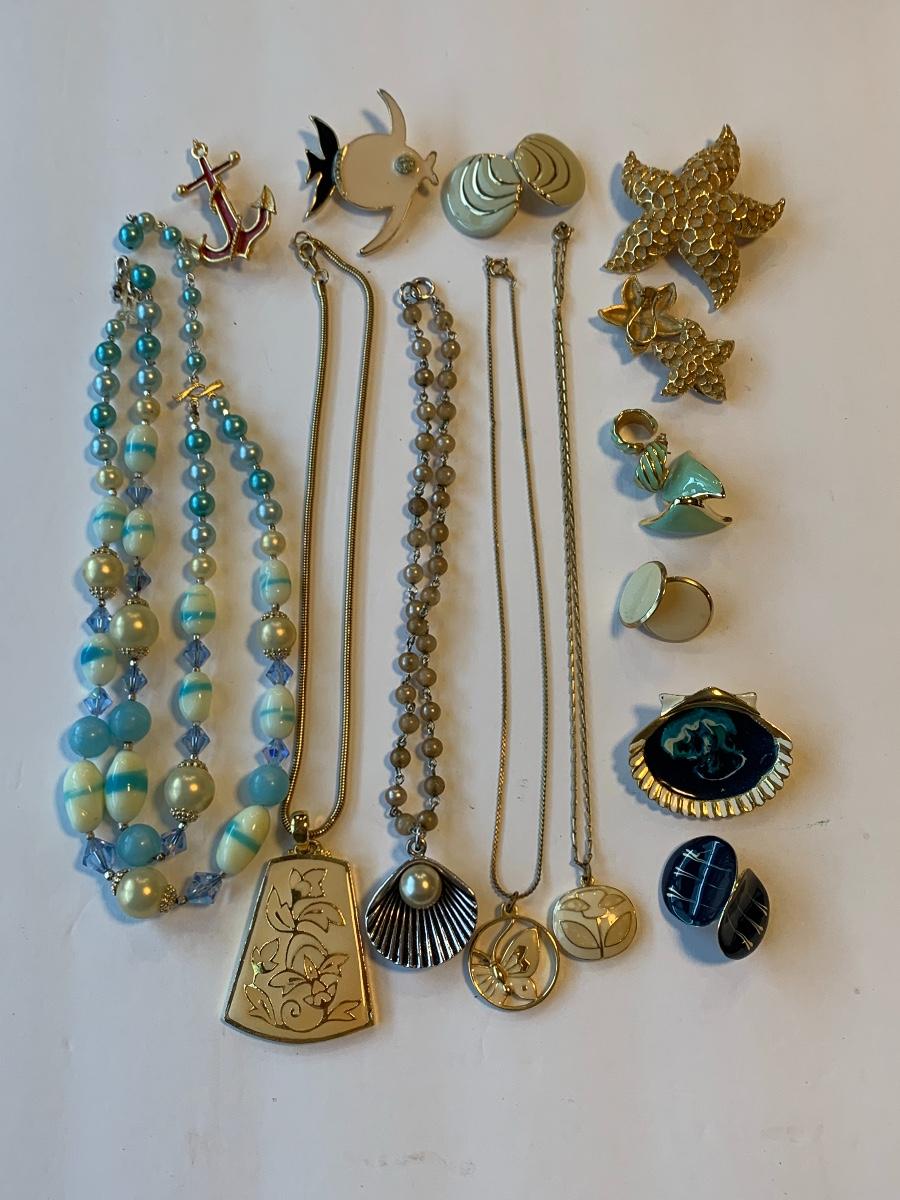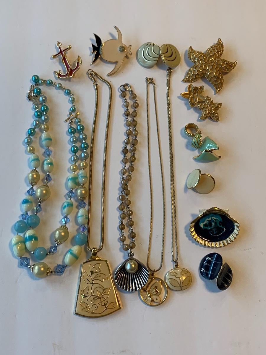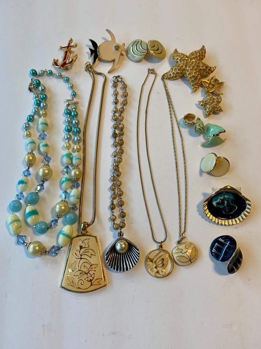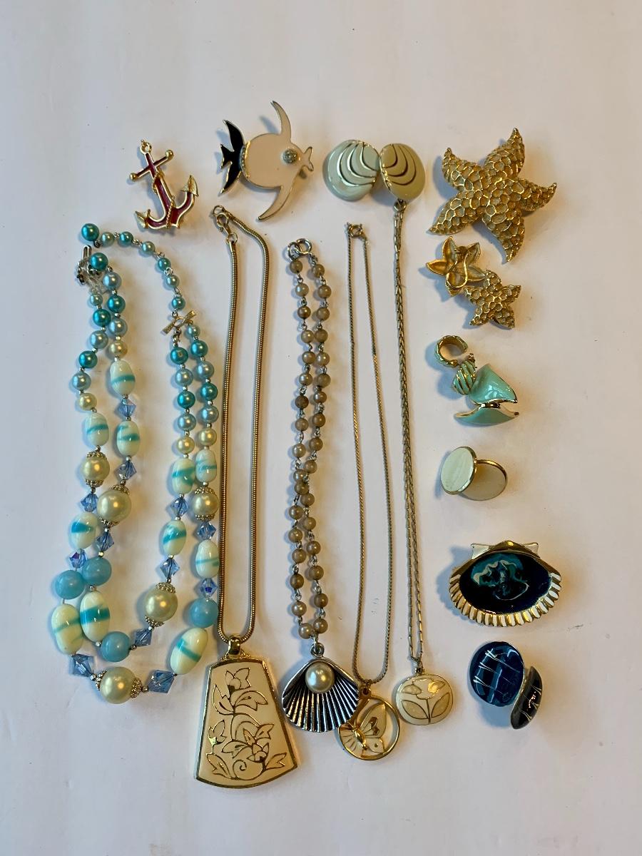 Beads, Enamel, Rhinestones are all included in this lot of wearable jewels .