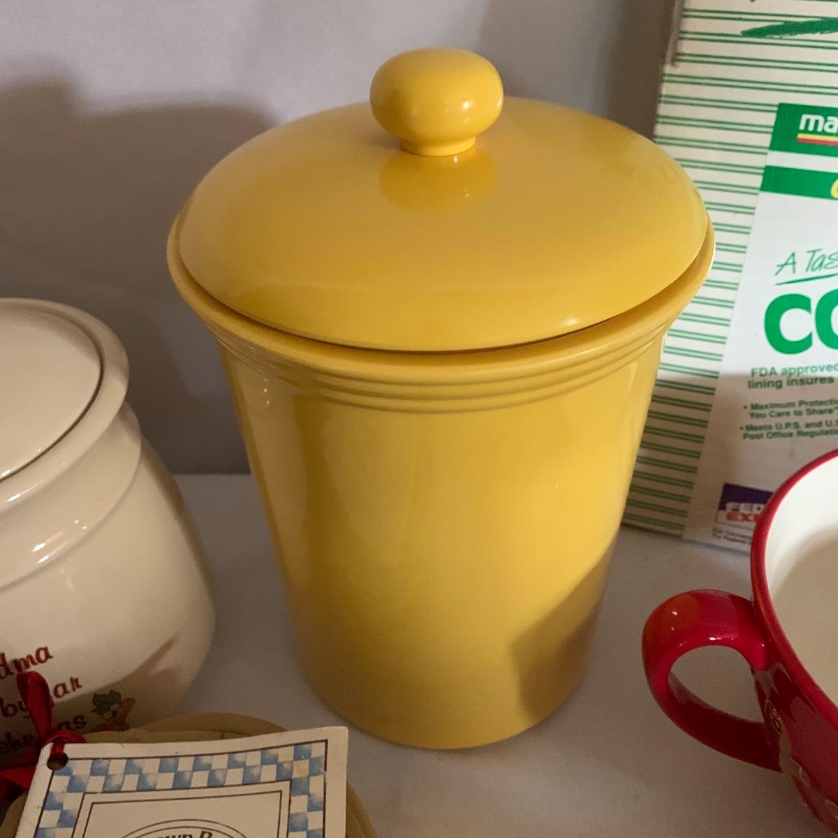 Yellow canister measures 6.75”diameter x 10.5” tall.