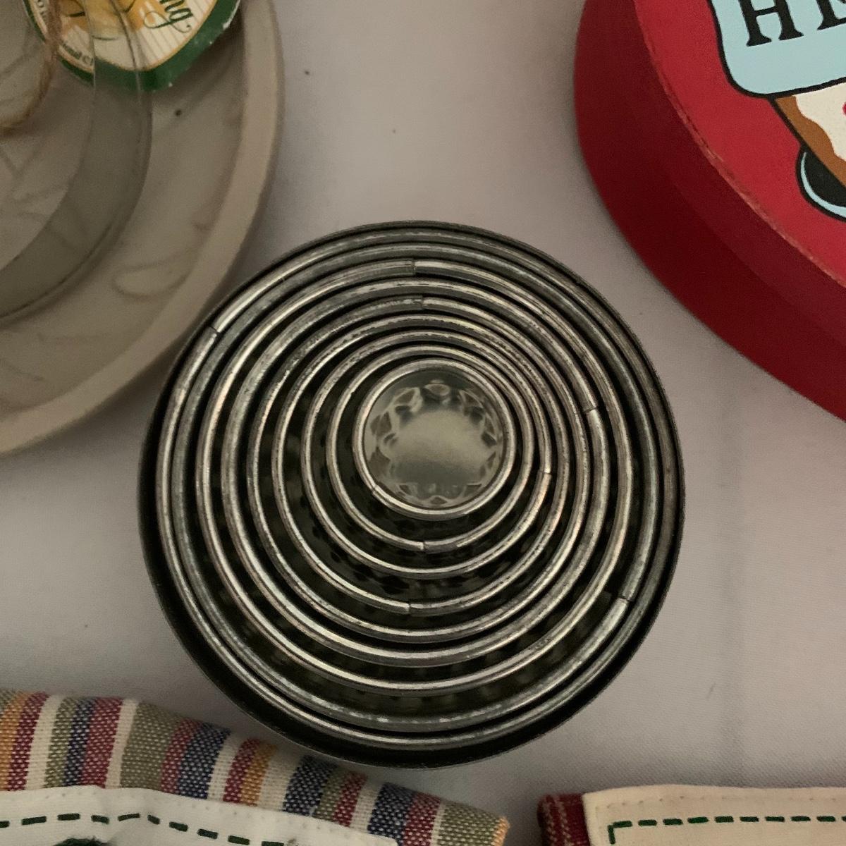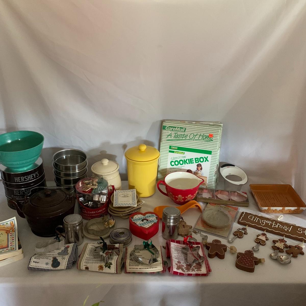 The cookie monster himself will be jealous of the lucky winner of this lot! Included are cookie cutters, cookie jars, baking pans, recipe books, measuring cups, cookie molds, and everything cookie. This lot also includes a set of cute napkins with cookie recipes printed on them. Nestle canister was added to this lot later.