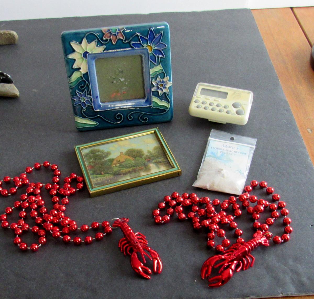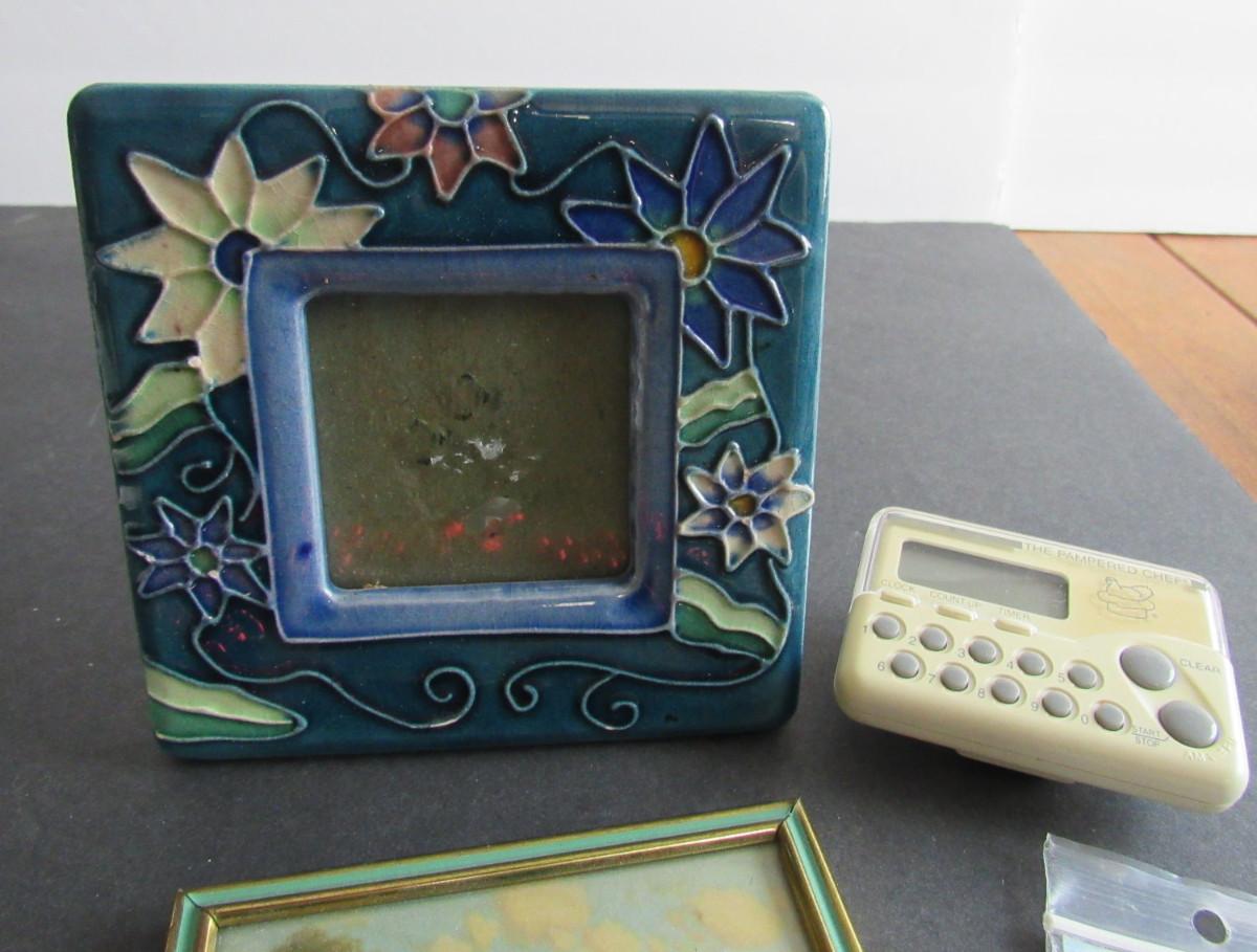 Lot 408: Junk Drawer Lot: Ceramic Frame, Pampered Chef Timer, More