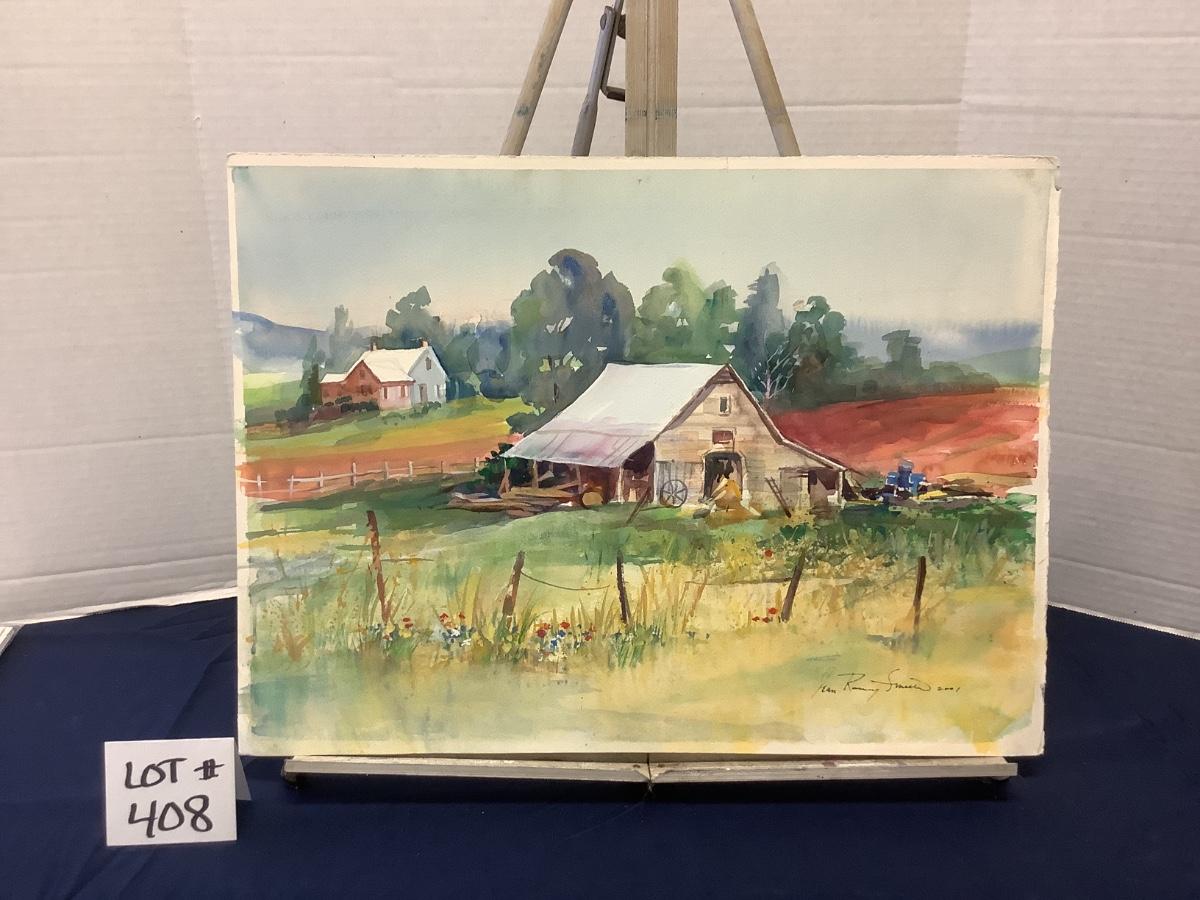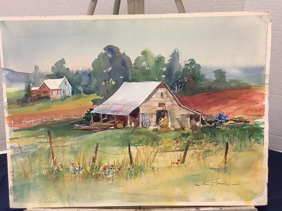 E - 408 Signed Original “ Farm Scenery “ Watercolor Painting by Jean Ranney Smith  2001