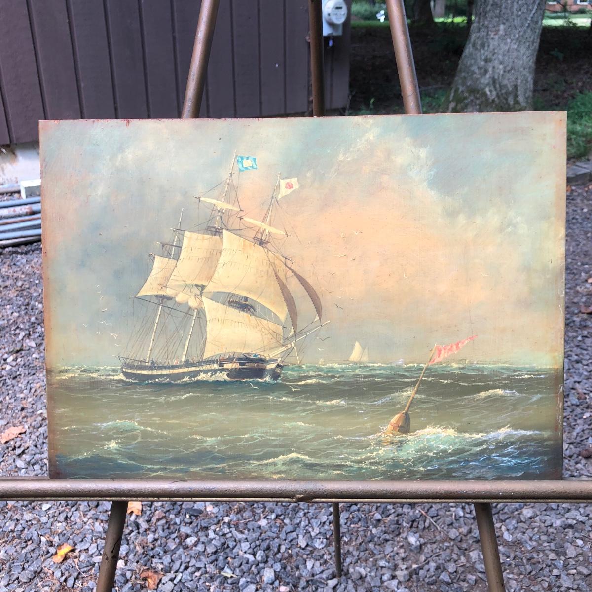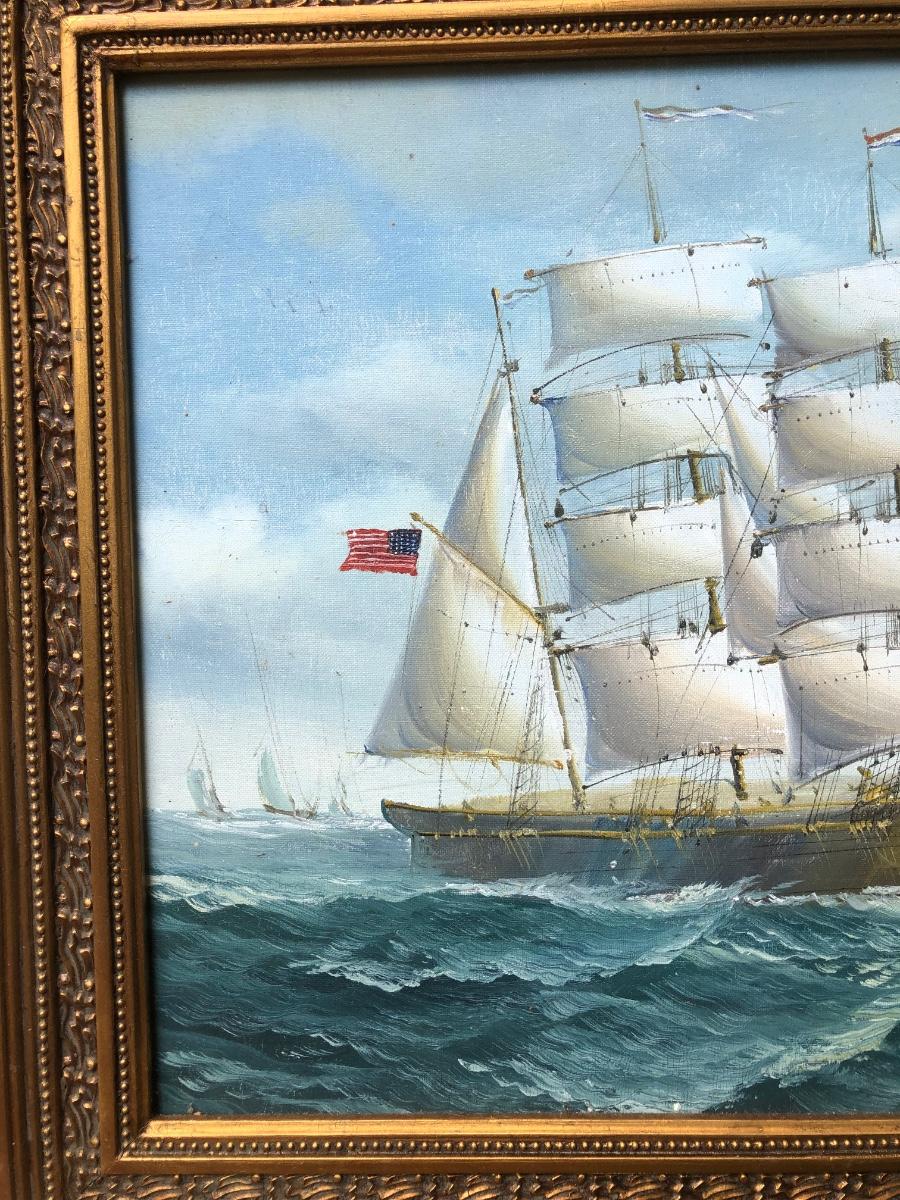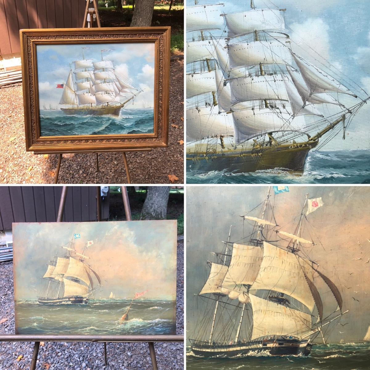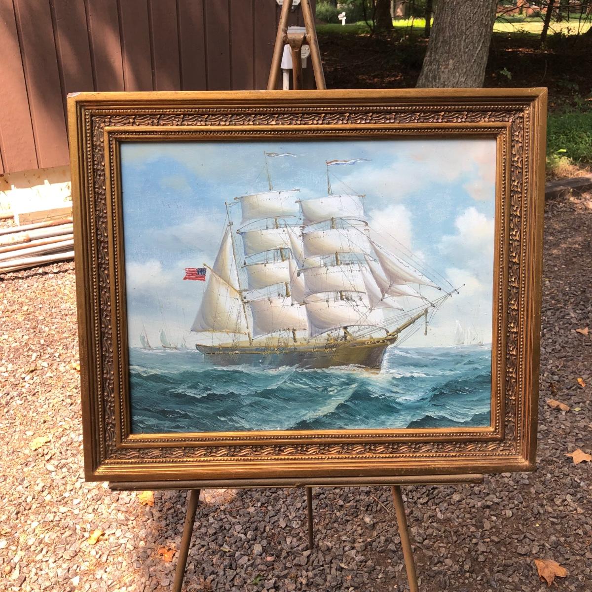 LOT 408G: Vintage Clipper Ship Paintings - Framed Clipper Ship & Unframed "A Breezy Day Off the Coast"