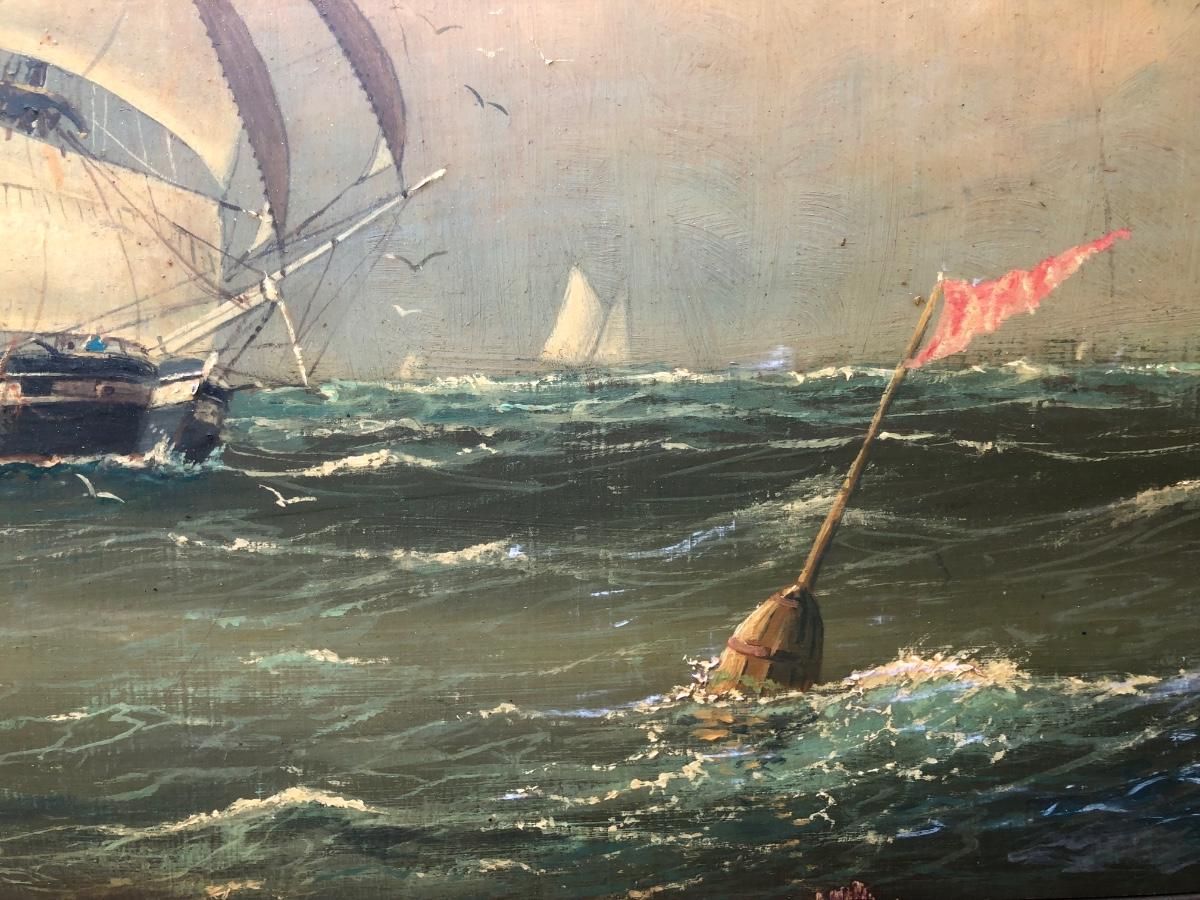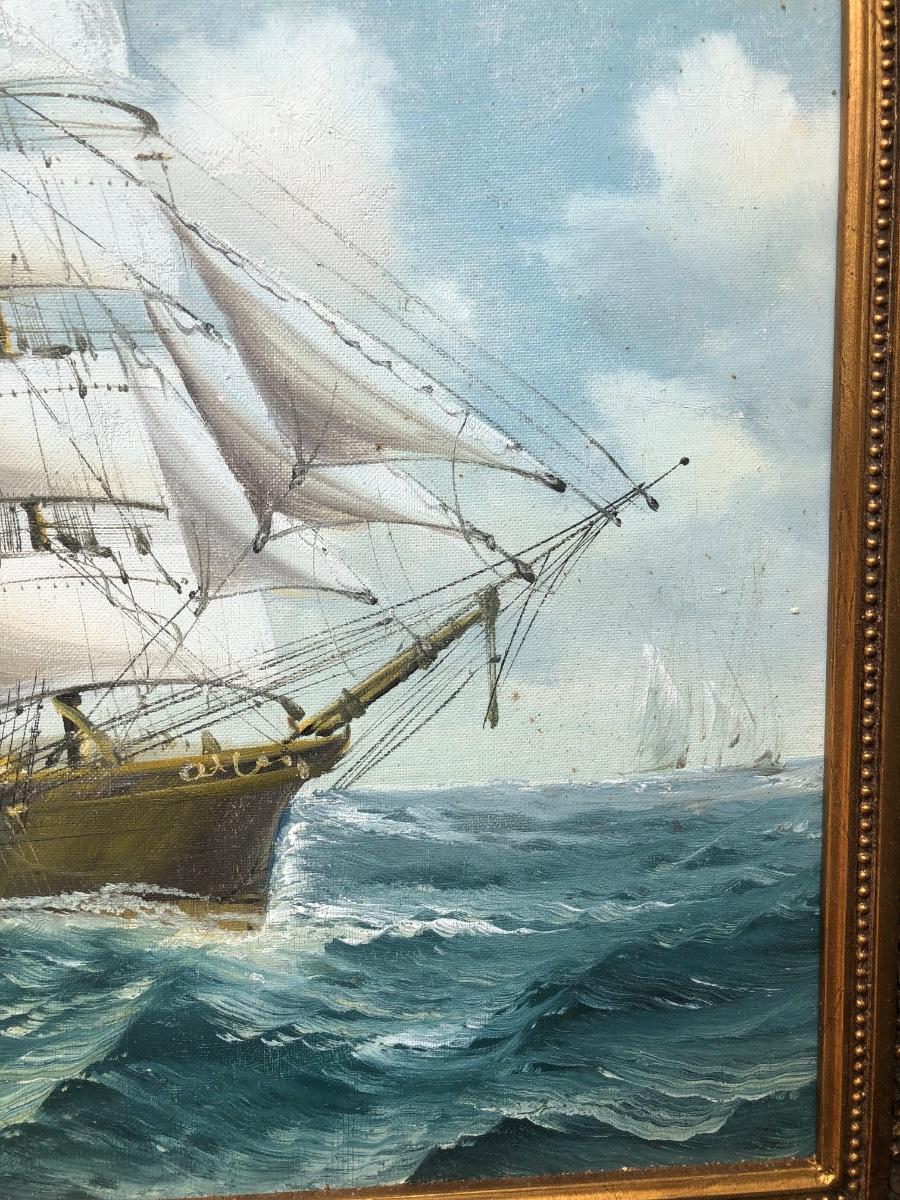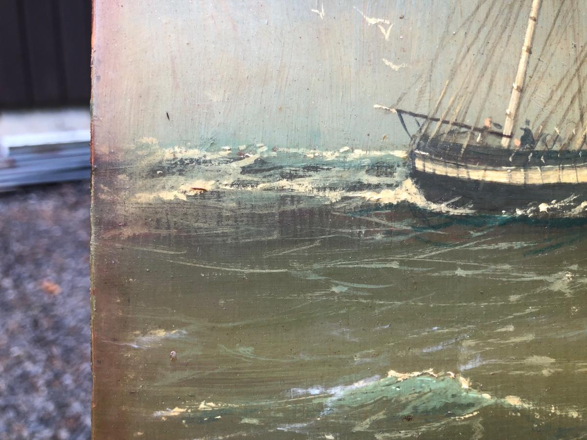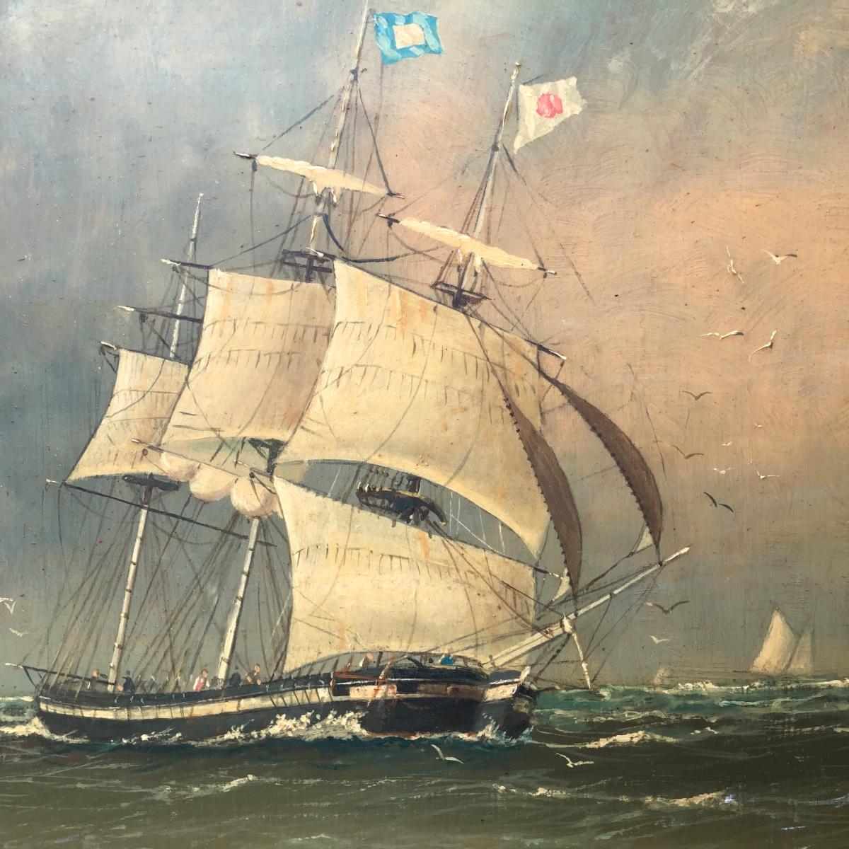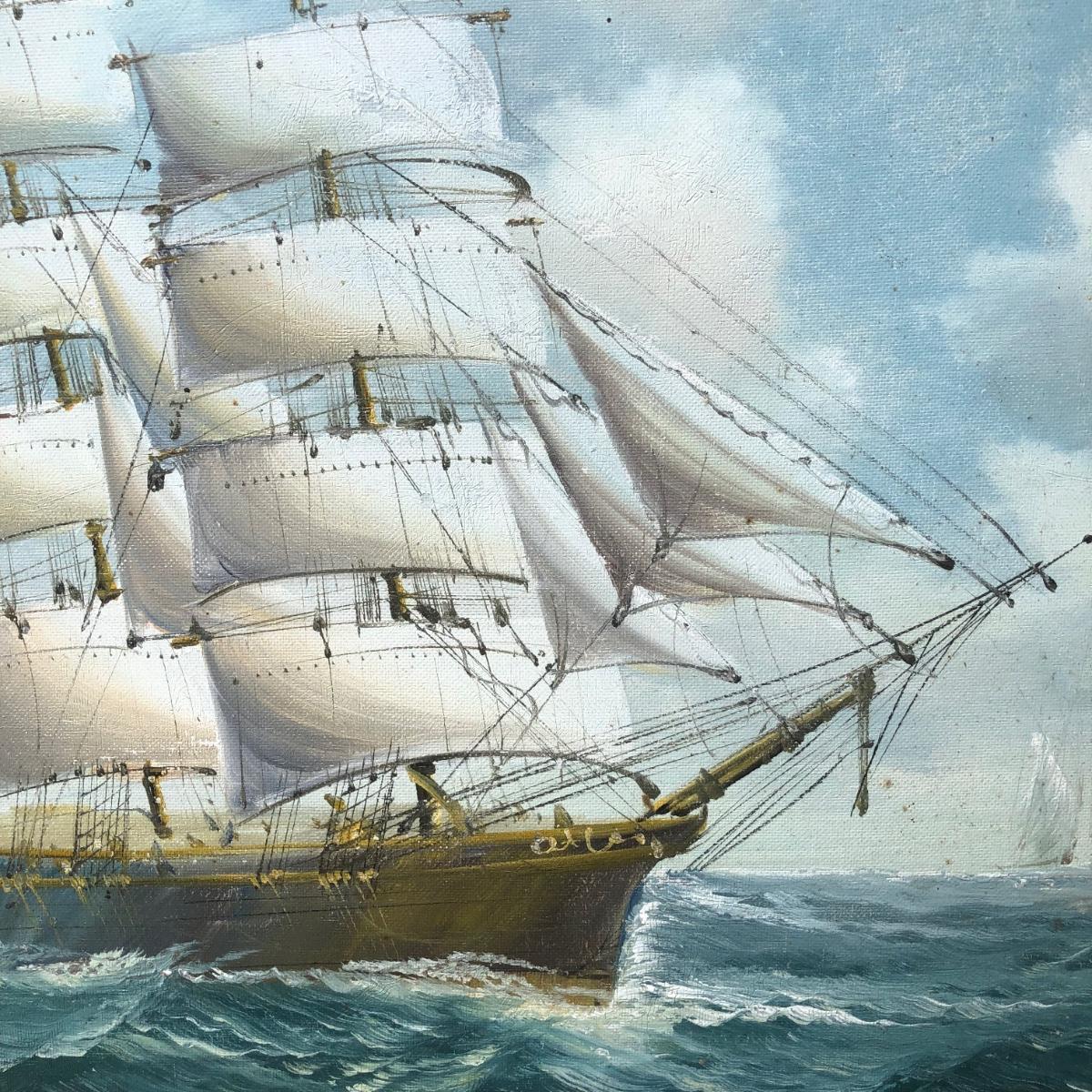 LOT 408G: Vintage Clipper Ship Paintings - Framed Clipper Ship & Unframed "A Breezy Day Off the Coast"