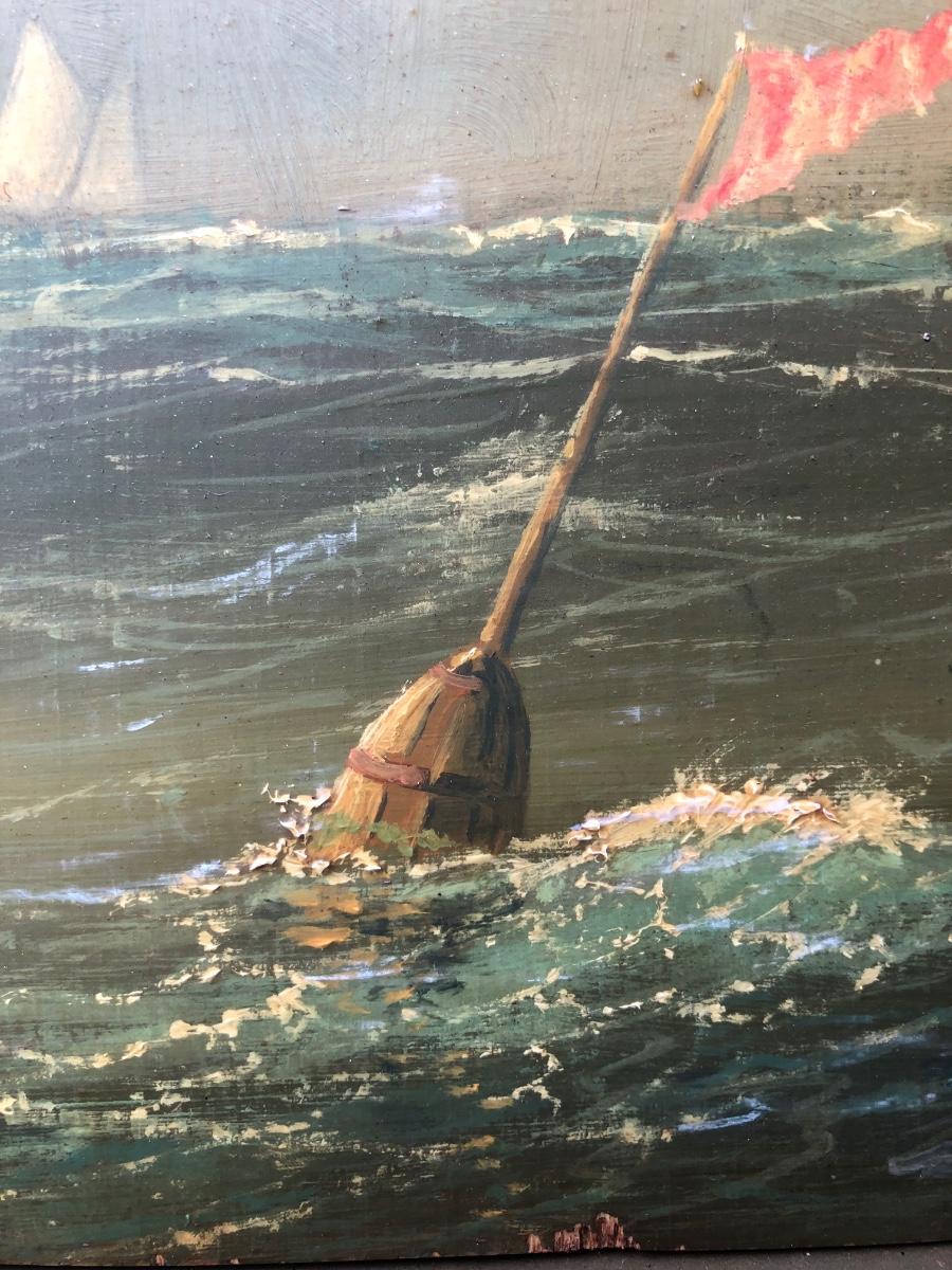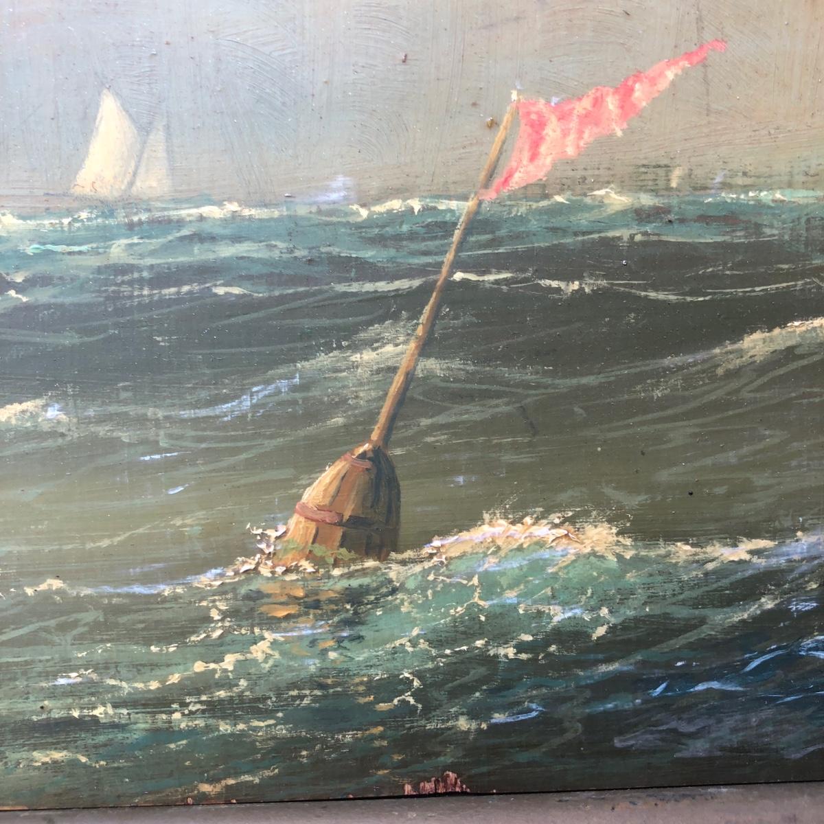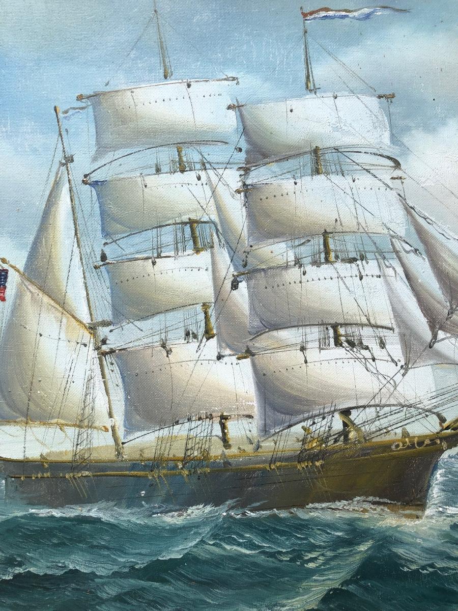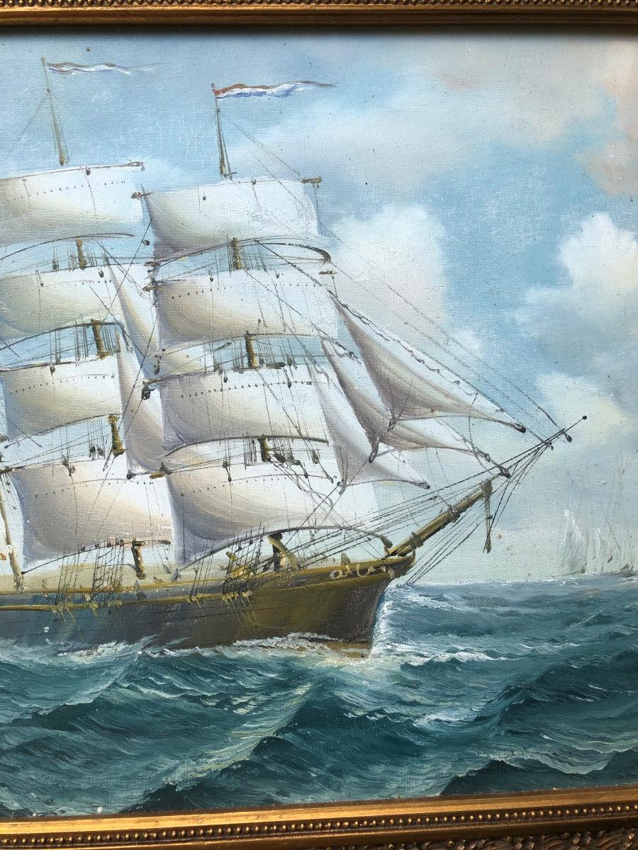 LOT 408G: Vintage Clipper Ship Paintings - Framed Clipper Ship & Unframed "A Breezy Day Off the Coast"