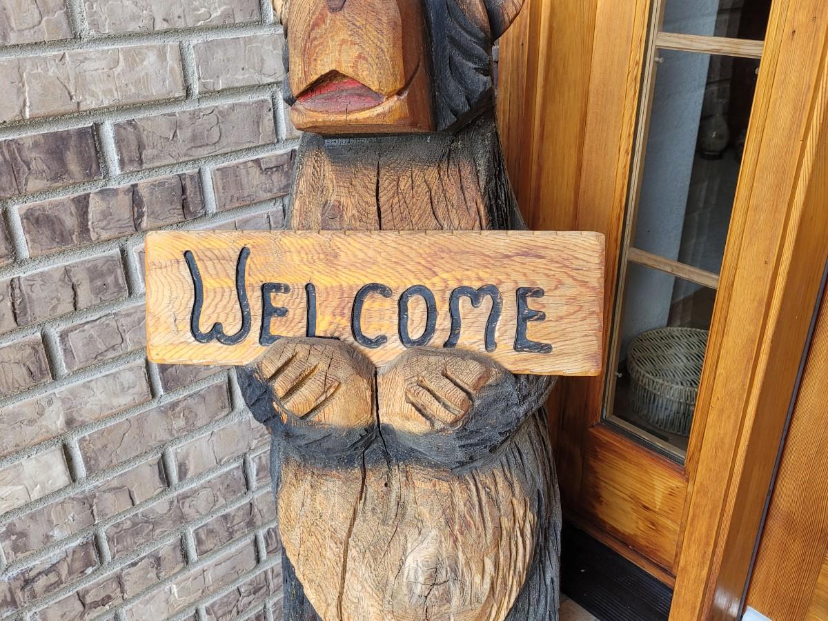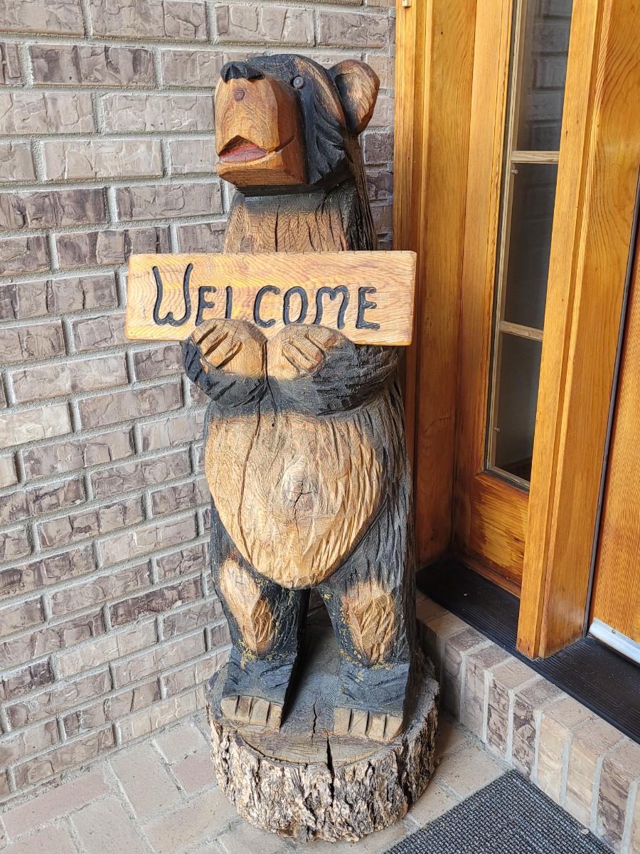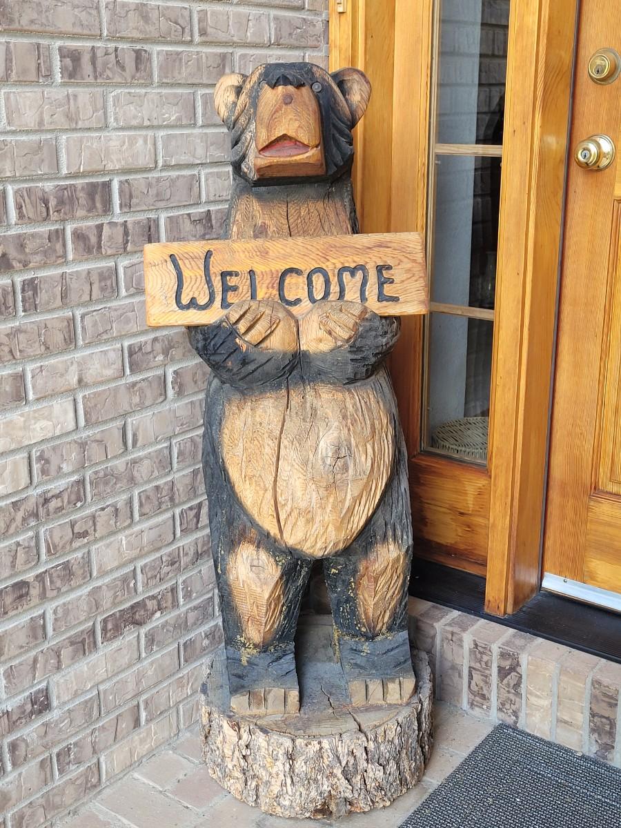 Lot 409: Large Welcome/I'm a Bear Go Away Bear Sculpture