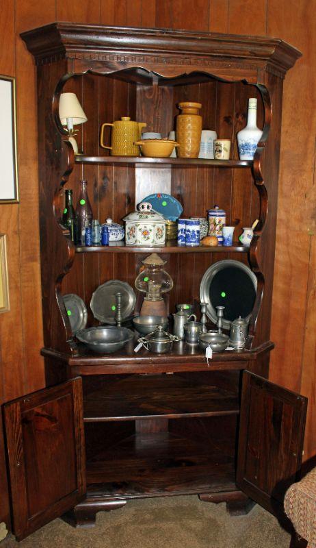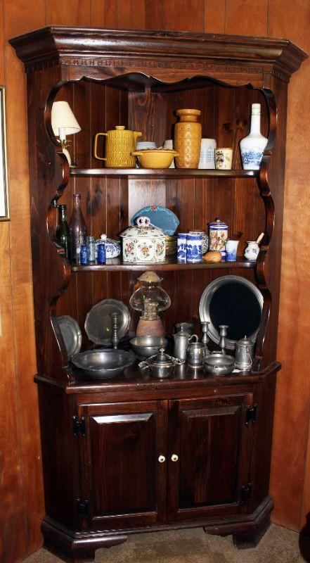 Large corner cabinet with lots if storage space. Excellent condition. Contents not included. 76" High x 39" wide x 26" deep