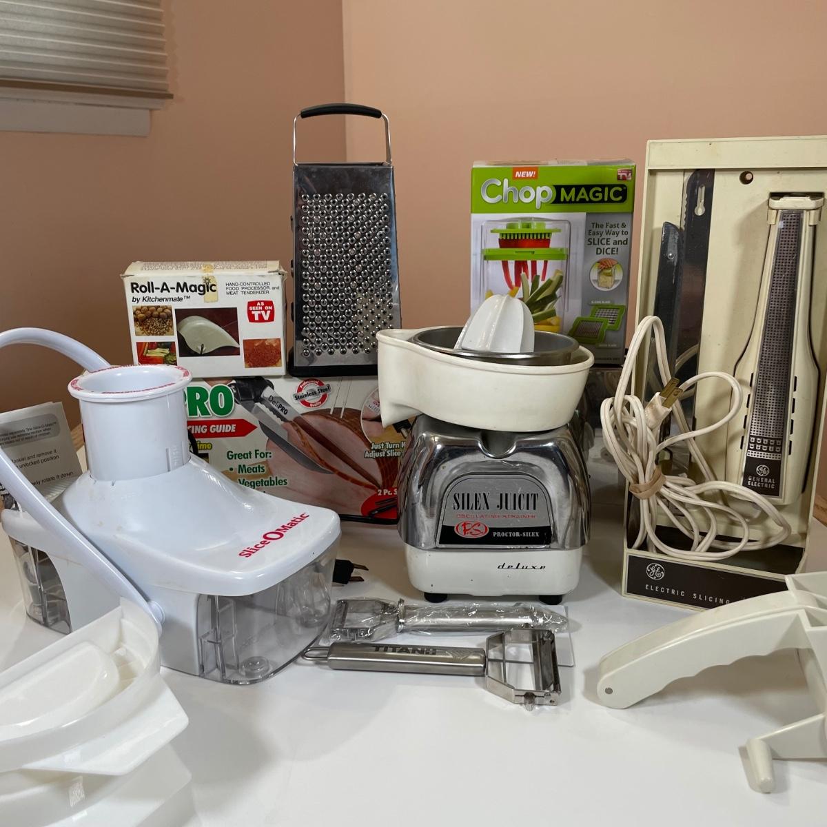LOT 409D: Kitchen Appliances & More - General Electric Slicing Knife, Silex Juiceit, Brentwood Toaster & More
