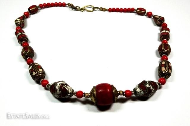 LOT 40D: TIBETAN CORAL & RED BEAD NECKLACE