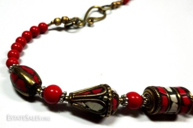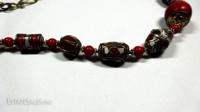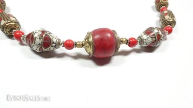LOT 40D: TIBETAN CORAL & RED BEAD NECKLACE, BRASS ACCENTS, APPROX 20"L, SKU321.103