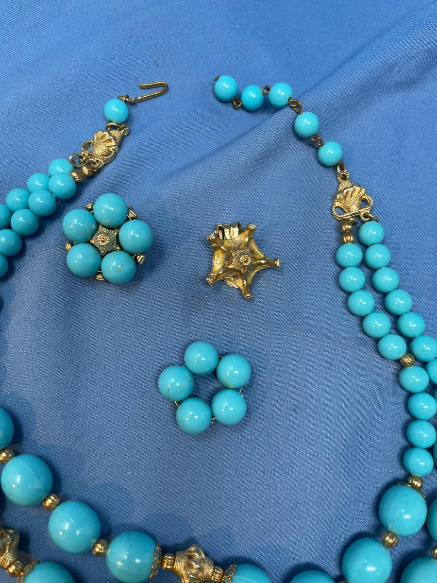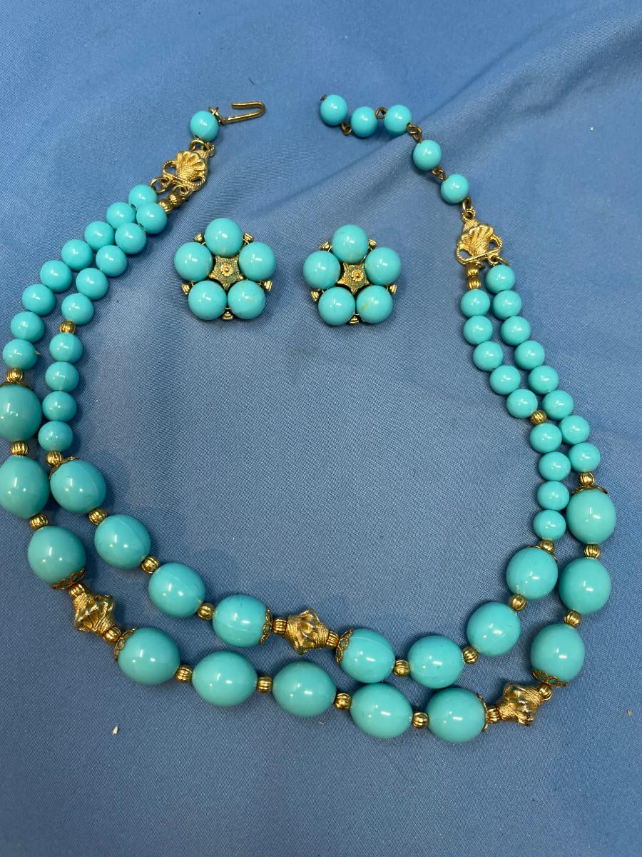 Take a look, the one earring beads needs re-attached. Looks to be Sarah Coventry, but no signatures found.