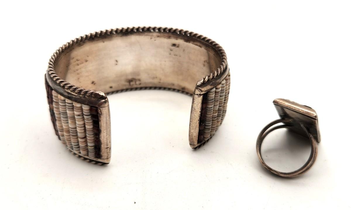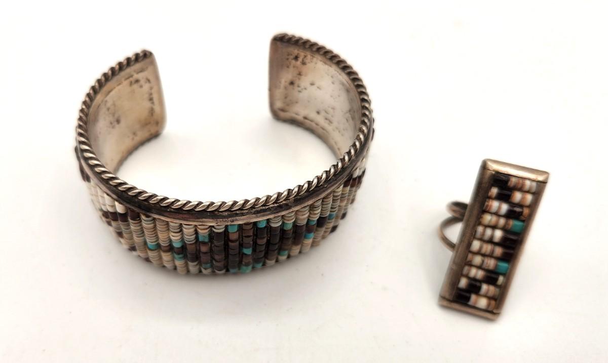 Artisan Southwest Sterling beaded cuff bracelet with matching ring - ring is size 6. Cuff is a bit over 1" wide. Excellent condition.