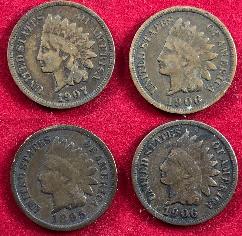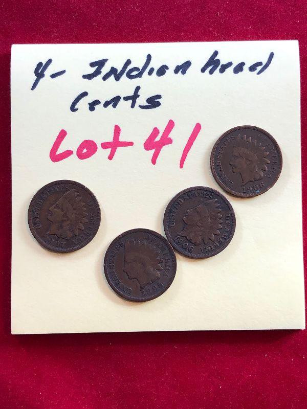 Lot #41- 4 Indian Head Copper Pennies 1 Cent