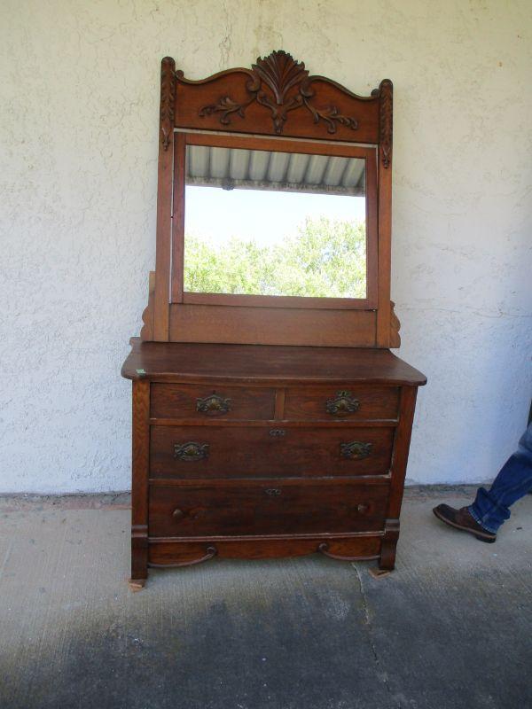 Lot 41 - Gorgeous Vintage Oak 2 Over 2 Dresser w/  Mirror