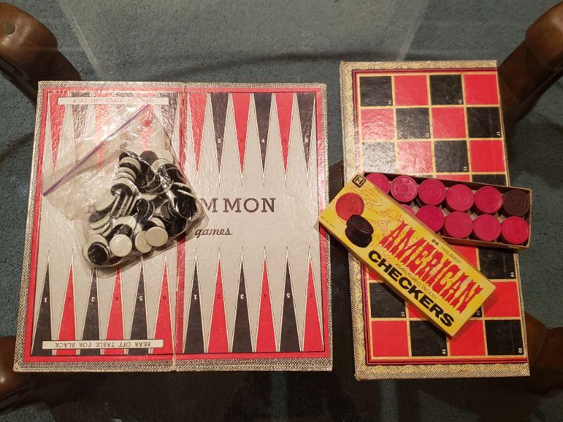 Lot 41: Vintage Checkers and Backgammon Games Boards and Pieces