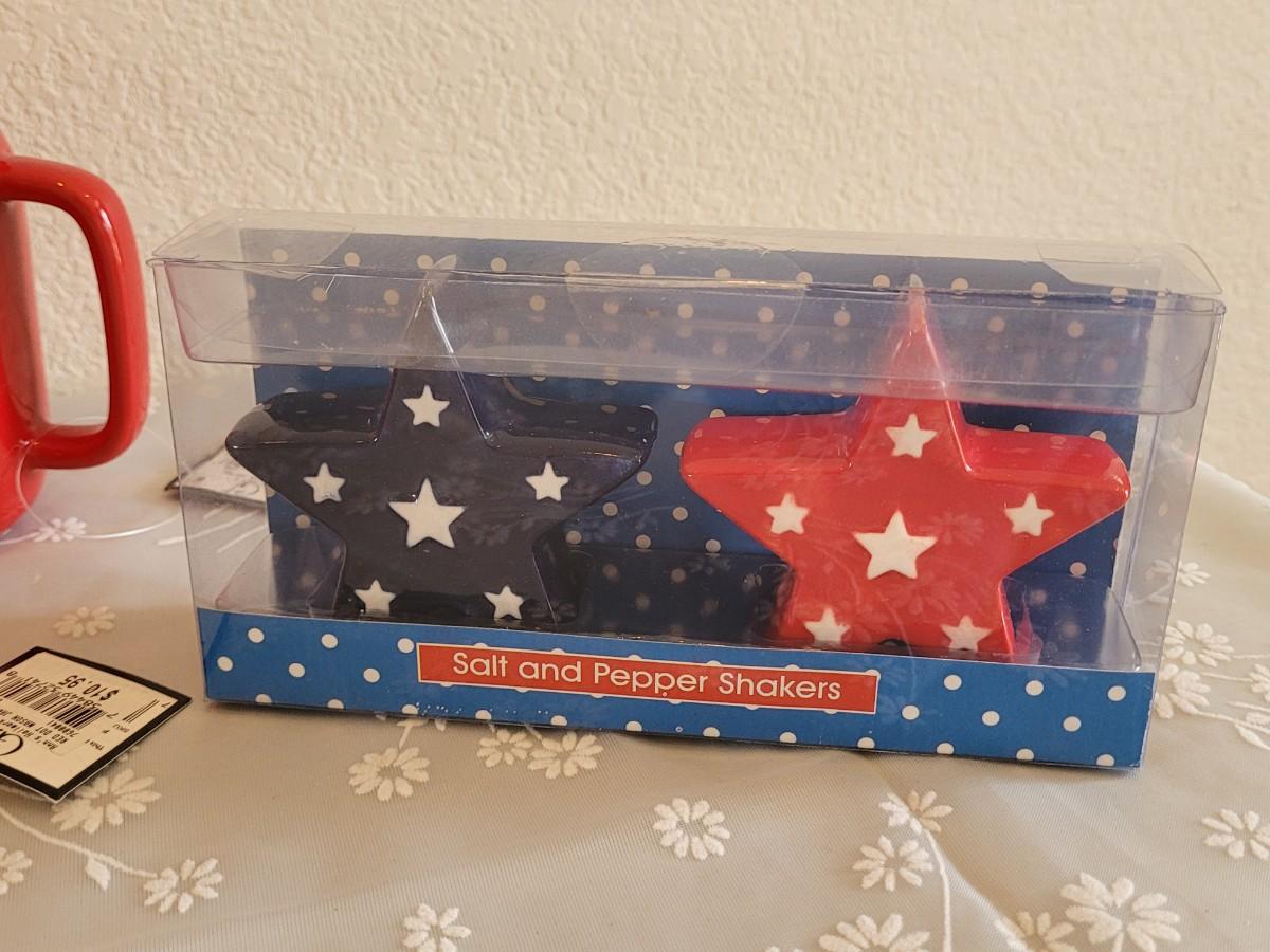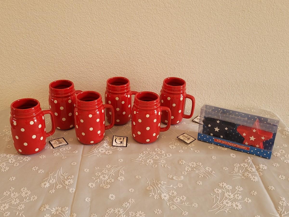 Lot 41: (6) Mason Ceramic Jar Cups and Star Salt & Pepper Shakers