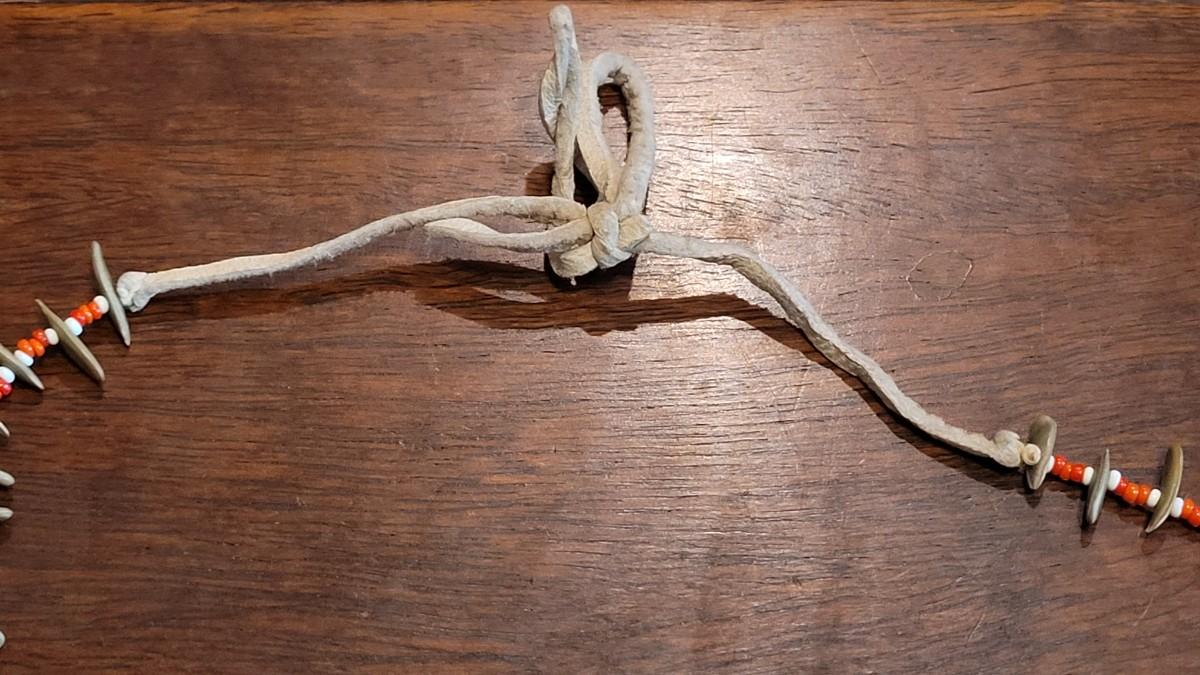 Lot 41: Vintage Rare Native American Sunflower Seed and Glass Seed Bead Necklace on Soft Buckskin