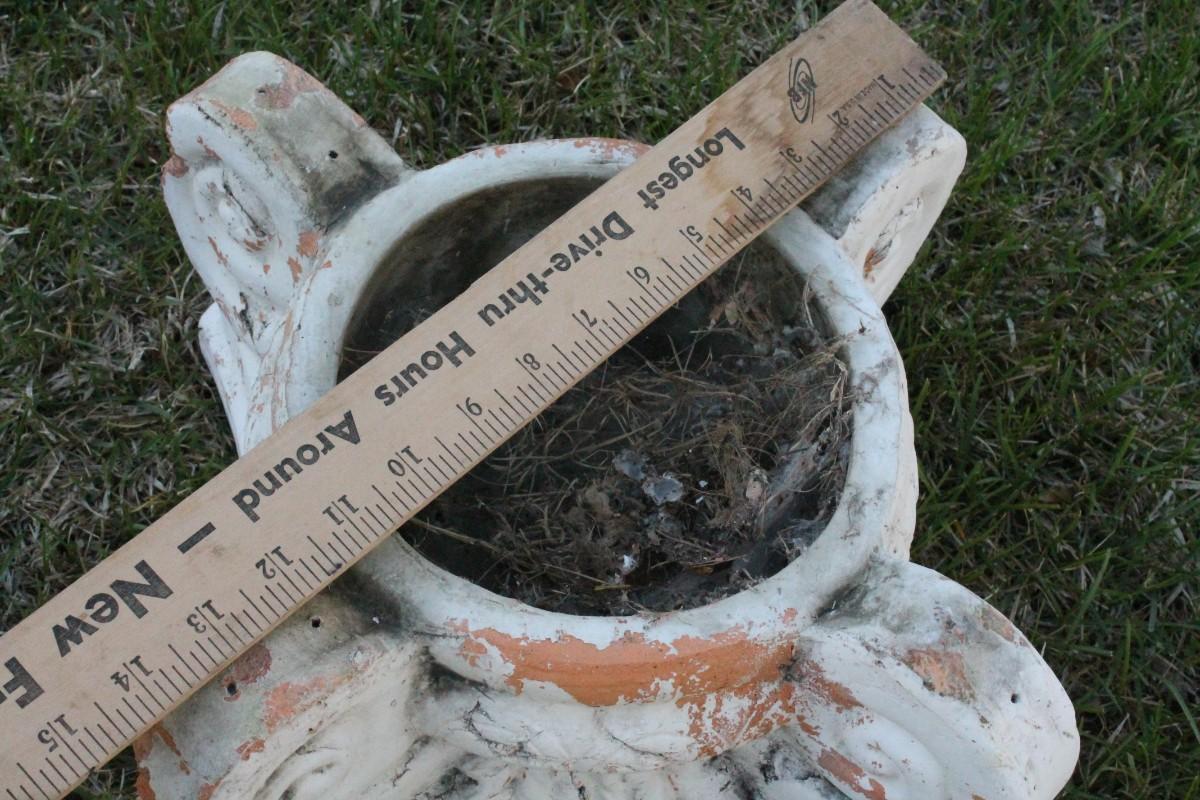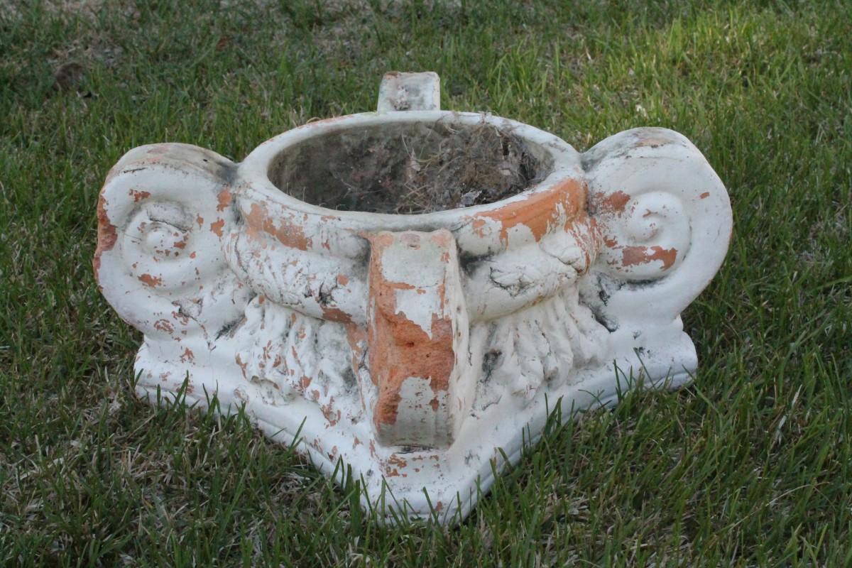This vintage clay plant stand is in good condition for age but does show a few defects to be expected with use and age. Approximately 13.5" x 6.5".