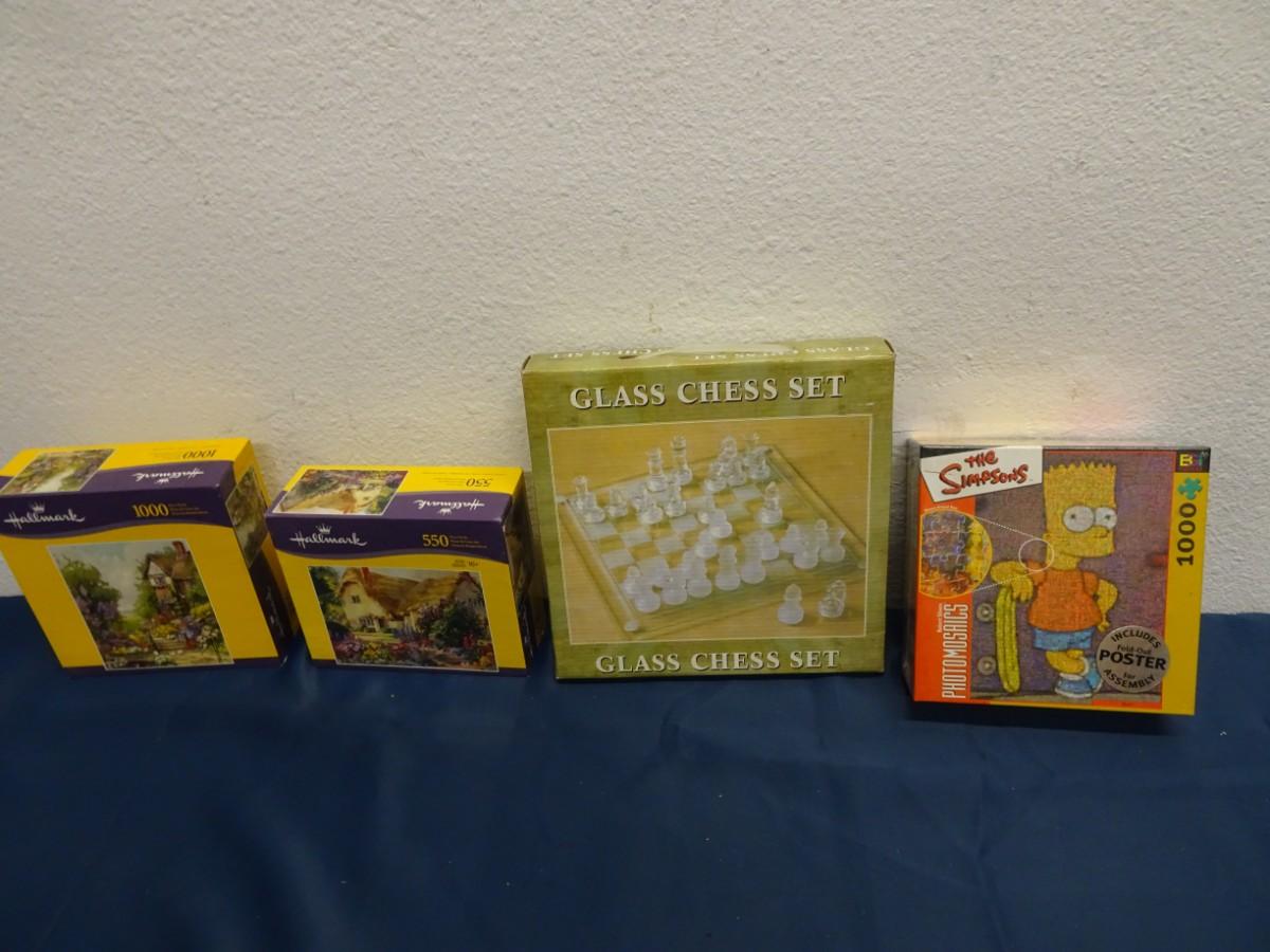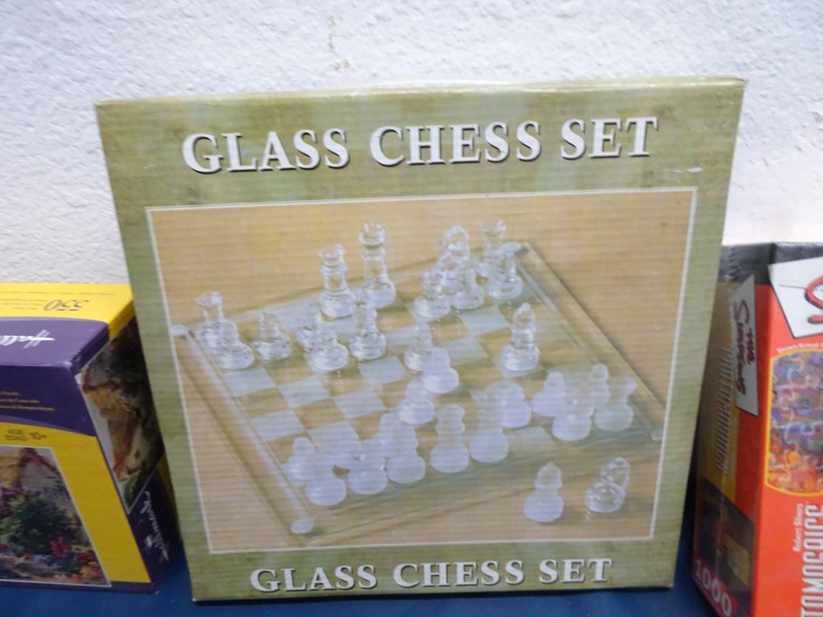 GLASS CHESS SET AND PUZZLES