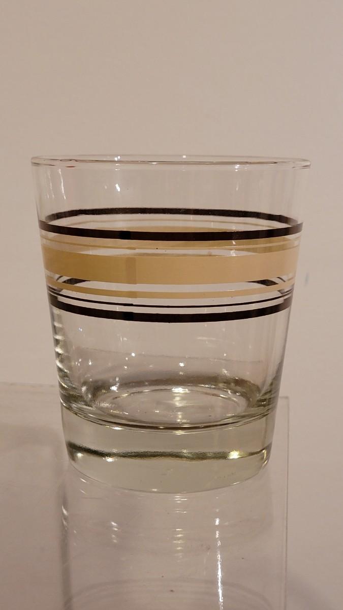 Set of 4 Yellow & Brown Stripe ☆ Circus Glass ☆ (mostly) Airline Swizzle Sticks