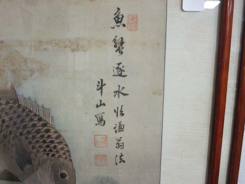 Lot 41 - Tall Framed Asian Carp Print with Chop Mark #2 Choice