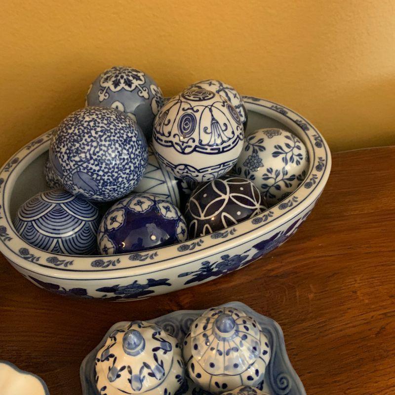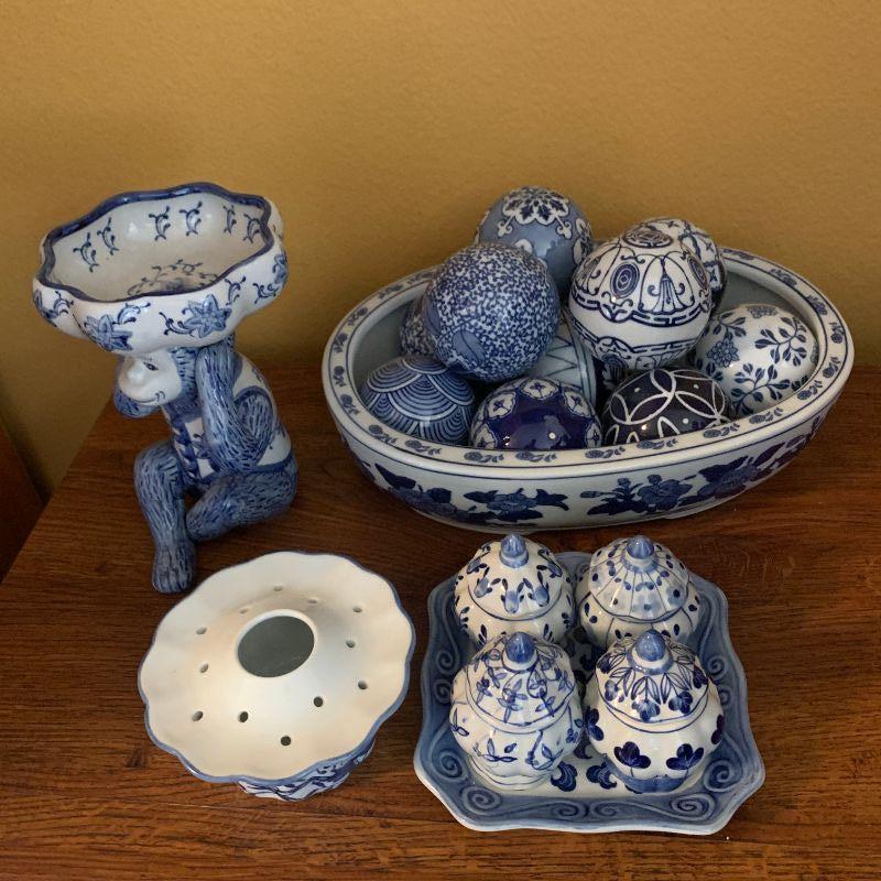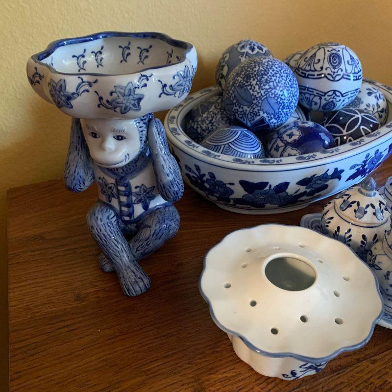 LOT 41 BLUE AND WHITE CERAMIC HOME DECOR