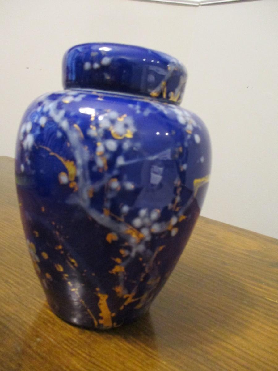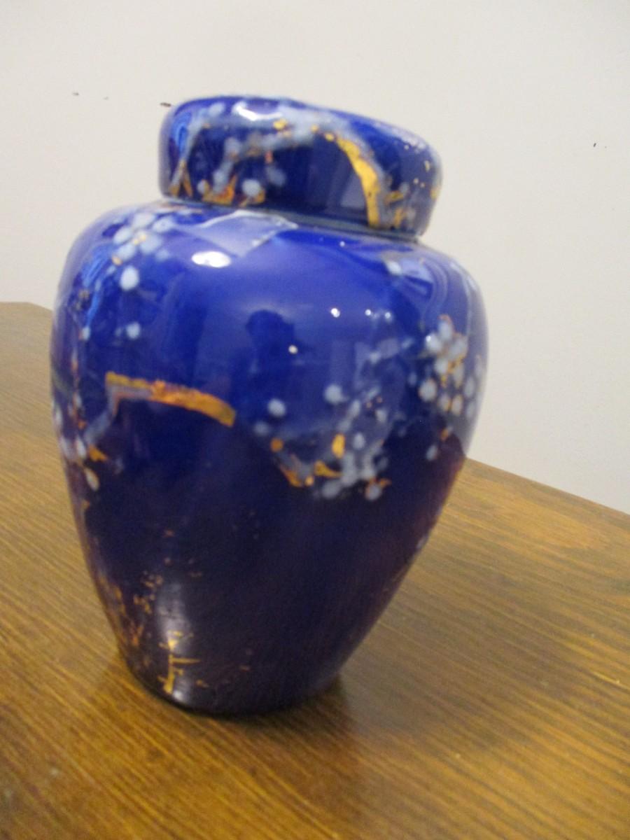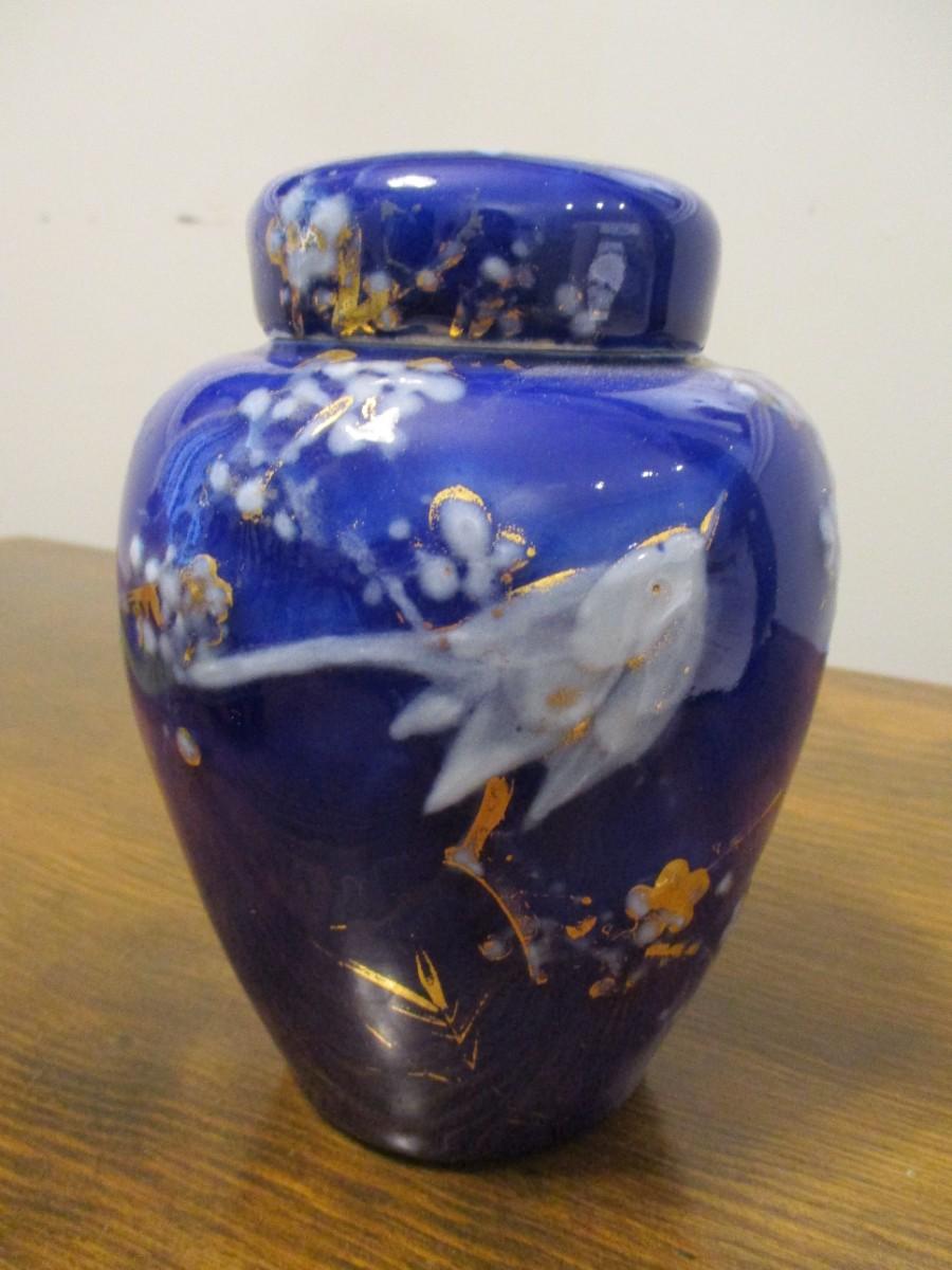 Lot 41 - Blue Ceramic Ginger Jar With Bird Design