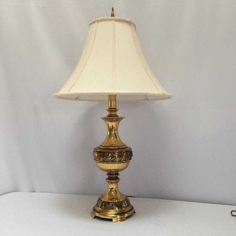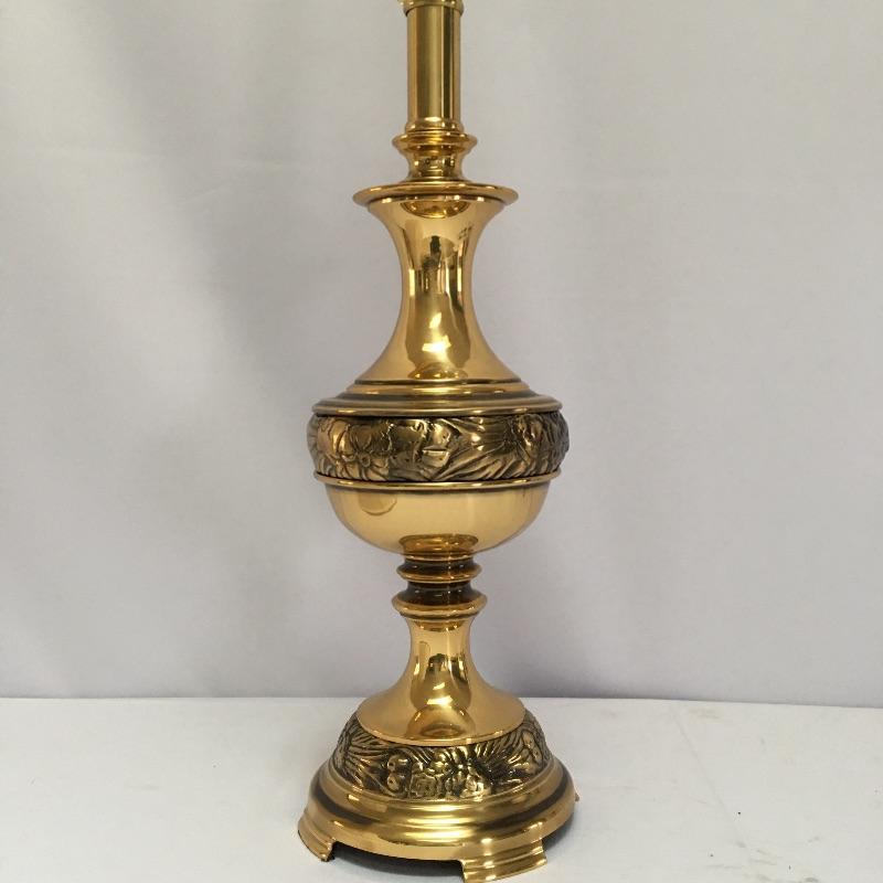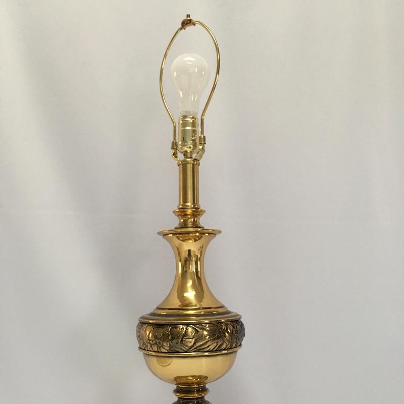 Lamp measures 30” tall with a 7”D base. Brighten up your room with this nice array of brass.