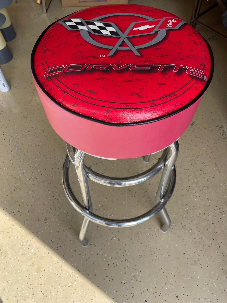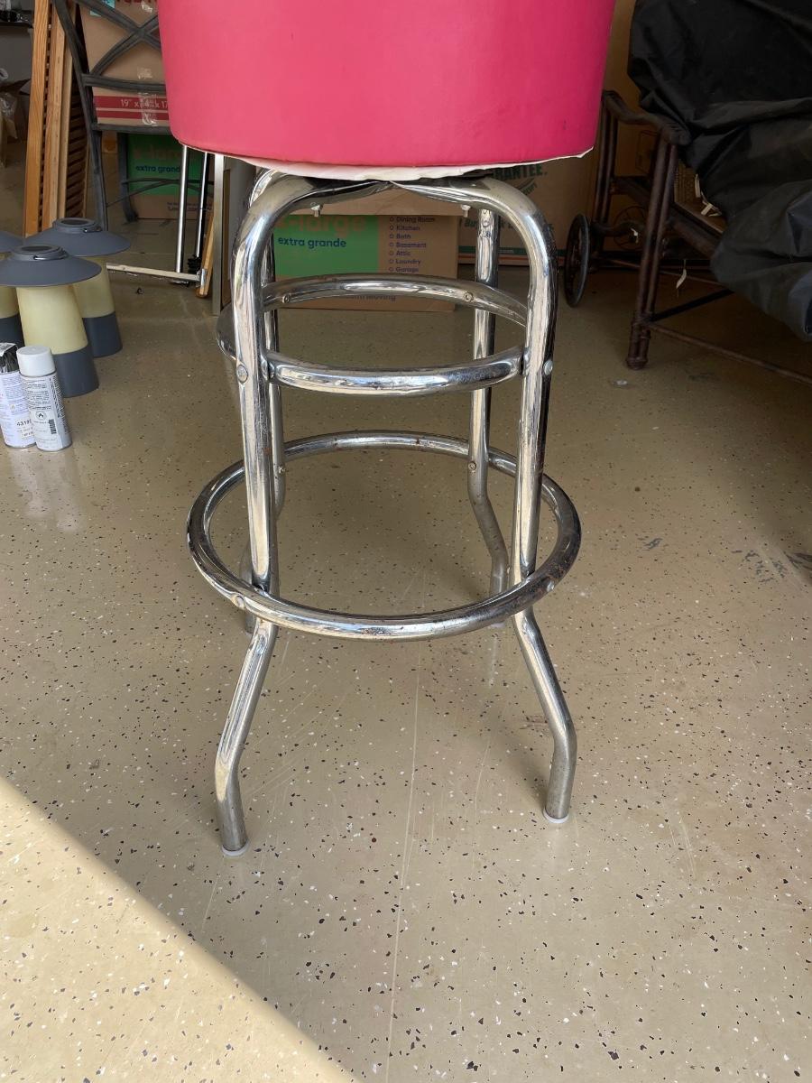 Bar height with vinyl upholstery. Chrome could use a little polishing but otherwise in great condition