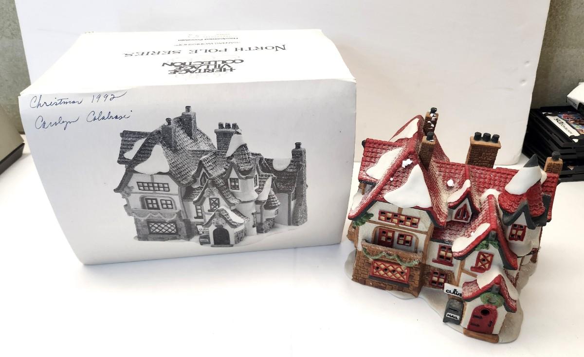 From the Dept 56 North Pole Village set - "Santa's Workshop" - introduced 1992 - now retired. A hard one to fine! Original box, good condition. This one would look cute all alone in any Christmas display.