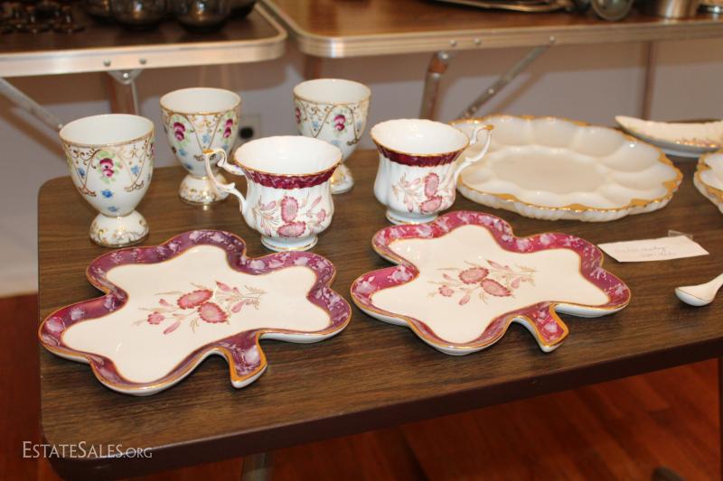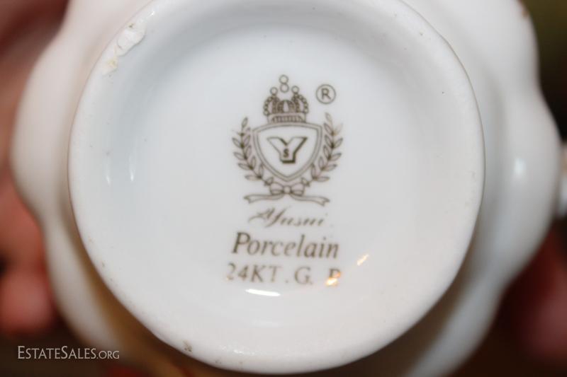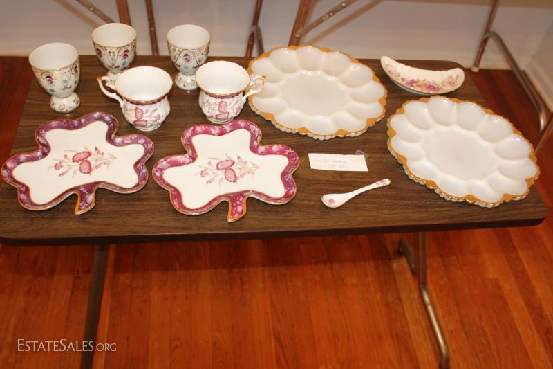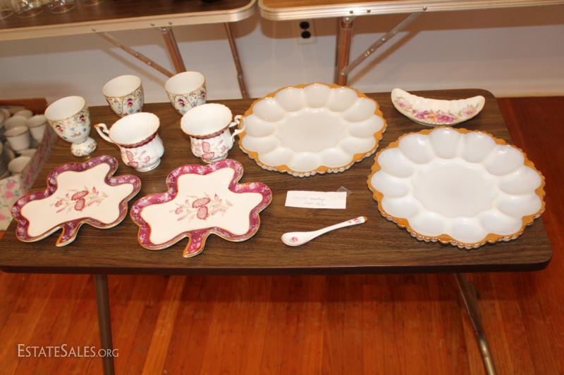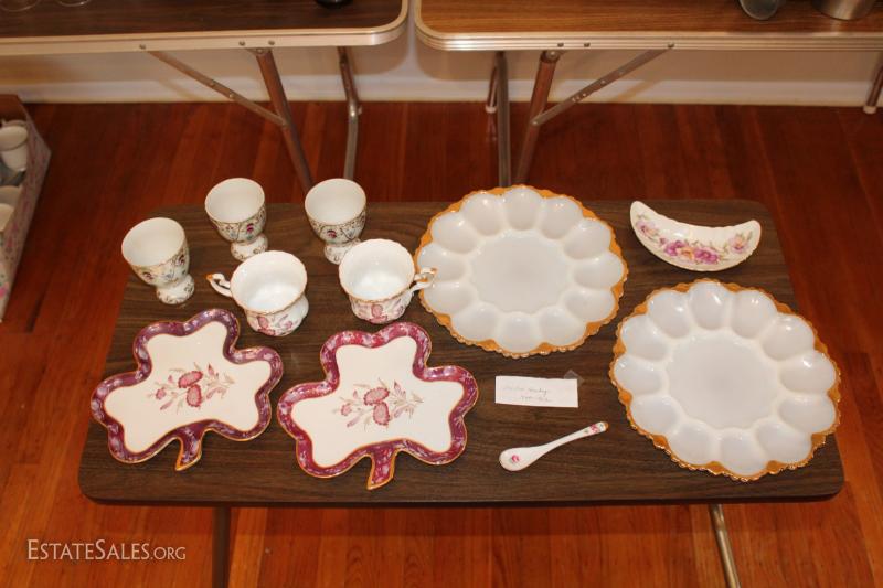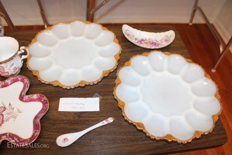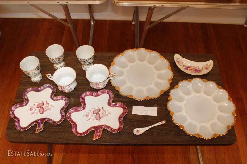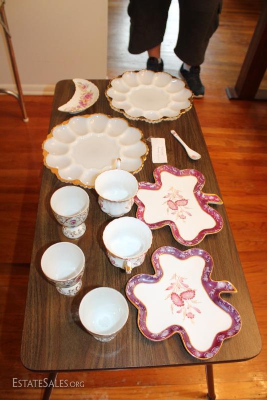 Lot #41 Deviled Egg (2), tea Cup (2), Goblet (2), Saucers (2), 24k plated