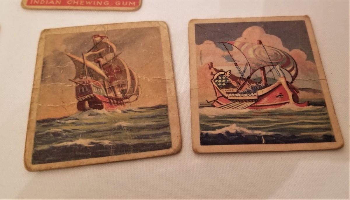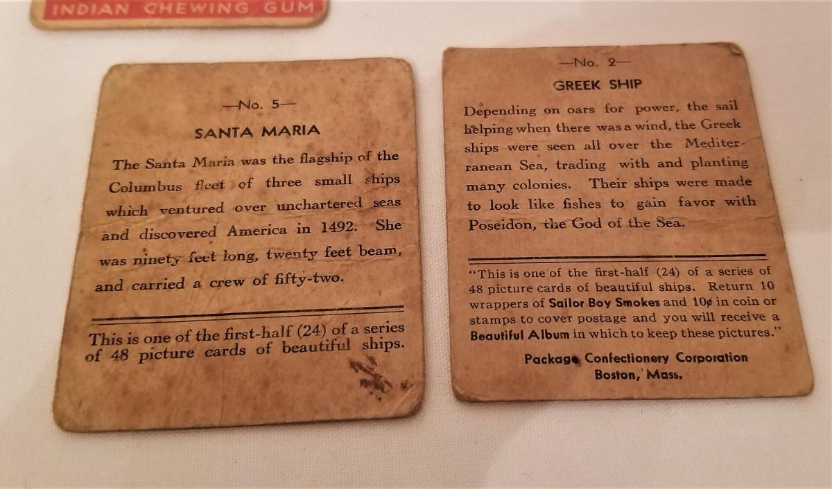 Cool grouping of 18 Indian Chewing Gum trading cards from 1933 - 16 are different with 2 duplicates, plus 2 cards from another set (Ships of the World). The original Indian set had 96 cards. They average 3" x 2.5" - a couple look as though they may have been "clipped" - could be a factory error. Varying degrees of condition - they have been used but look pretty good for being close to 100 years old! These average 5-15.00 each on ebay. Good dealer lot here.