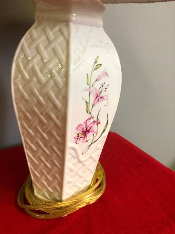 Lot 41 Irish Belleek Porcelain Bed side Lamp