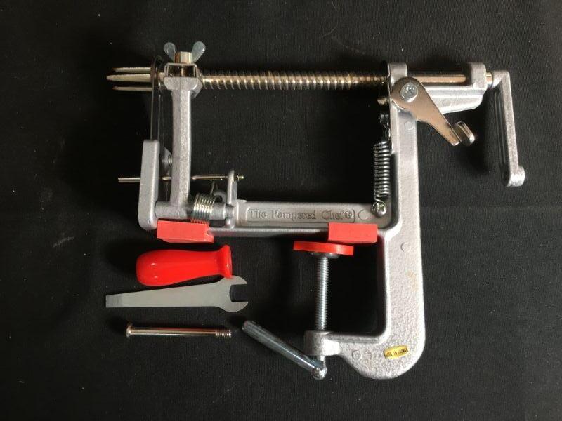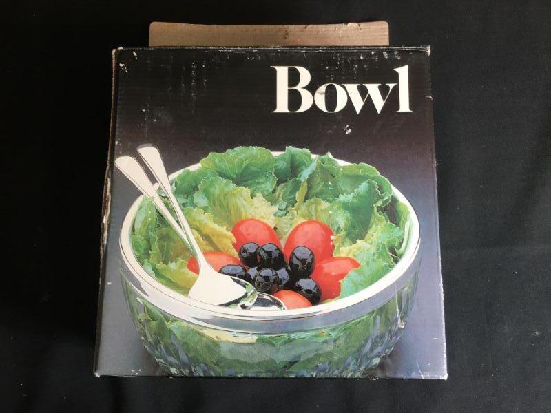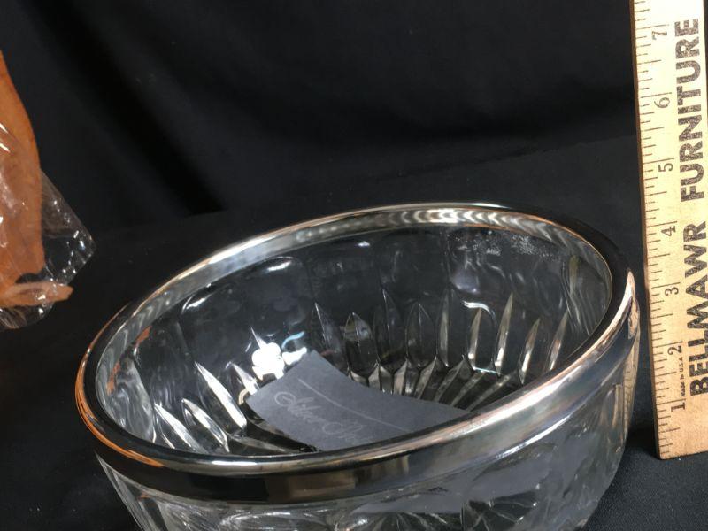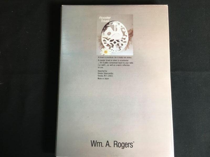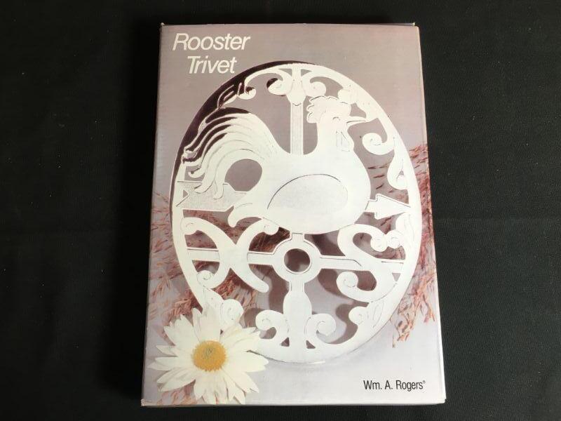 Lot 41: Leonard Silver trimmed Salad Bowl & tongs, apple corer, Wm. Rogers rooster trivet, and more
