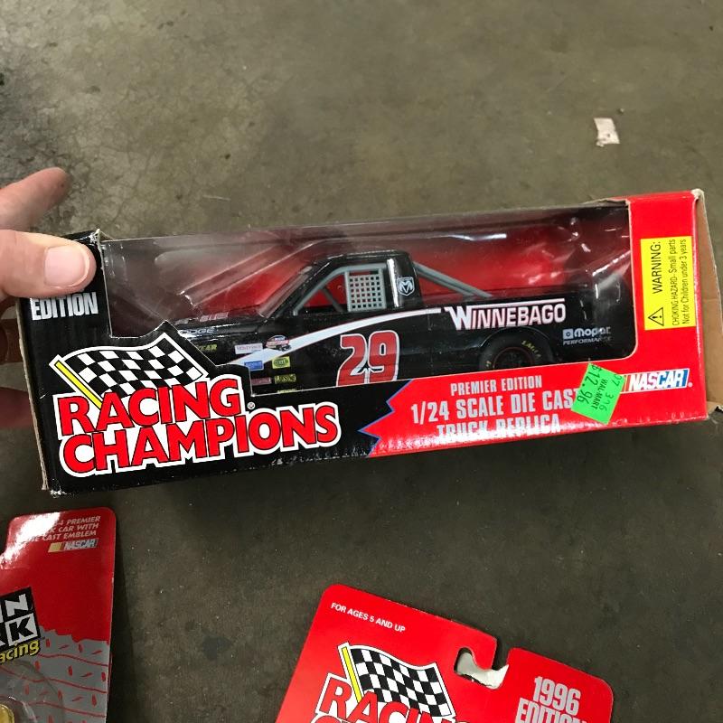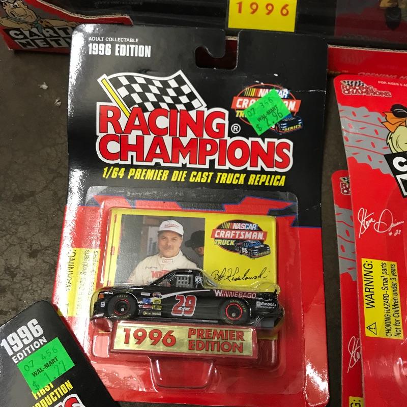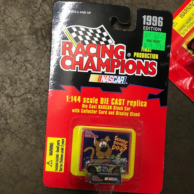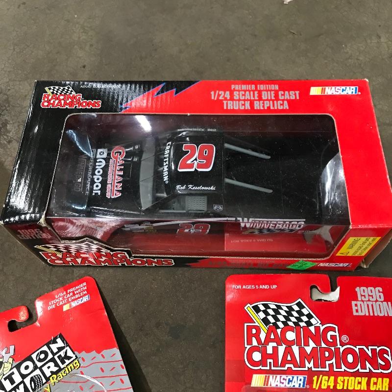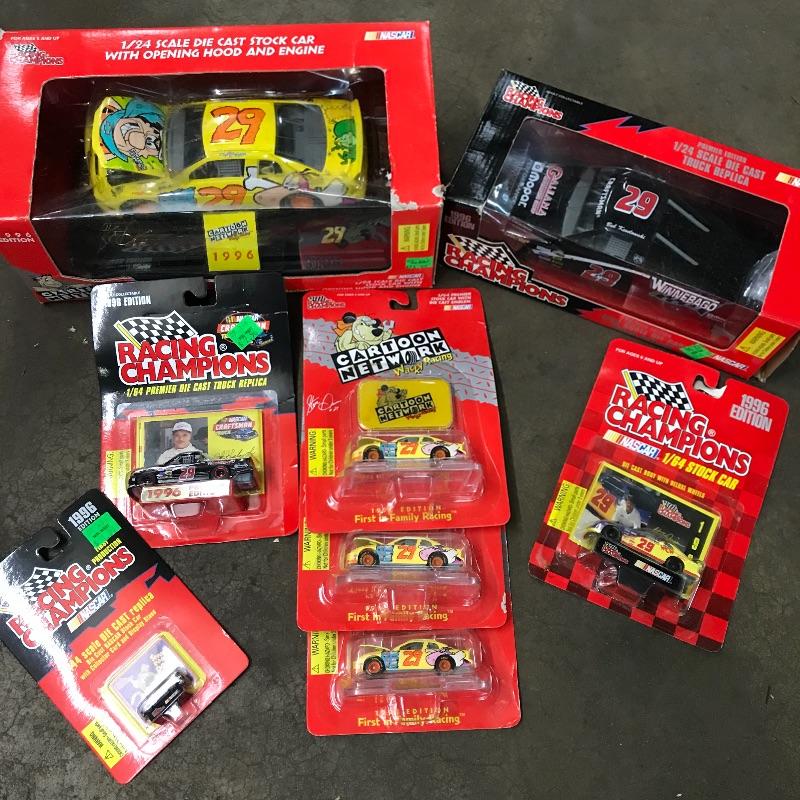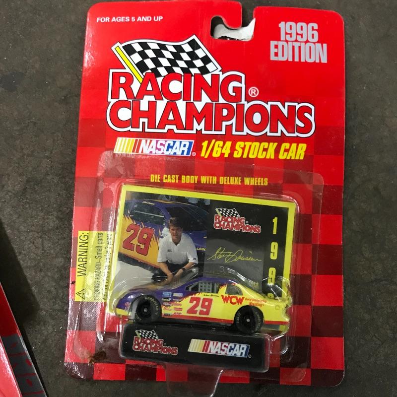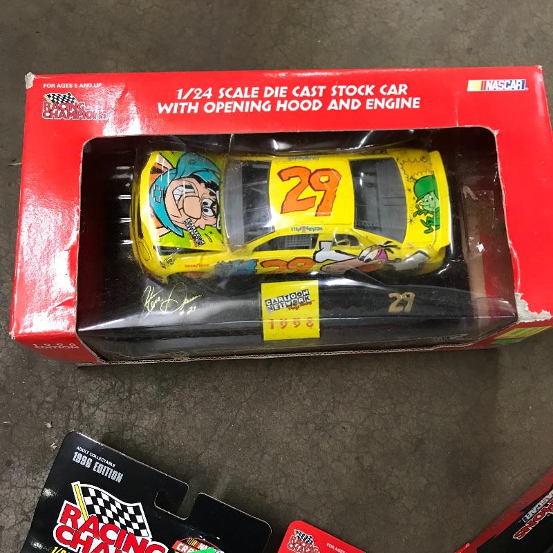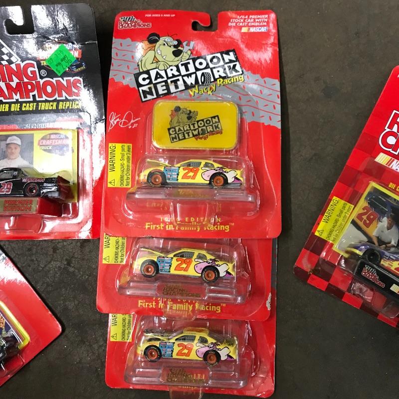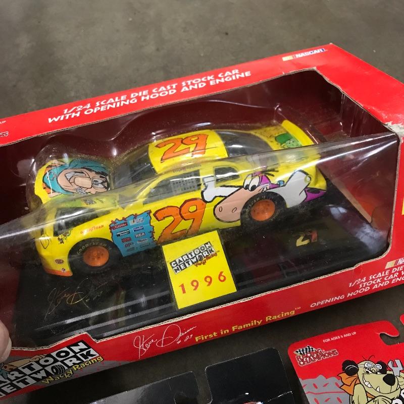 Four Racing Champion Cartoon Network Steve Grissom Wacky Racing cars including a 1/24 scale. A tiny 1/144 scale Scooby Dooby Doo. Lot also includes a 1/64 WCW Steve Grissom 1996 edition. To complete this #29 collection a 1/64 and 1/24 premier die cast replica Bob Keselowski Winnebagos. See photos. Winning bidder may ship this lot, please contact Sterling Transitions by phone after receiving winning bid email.