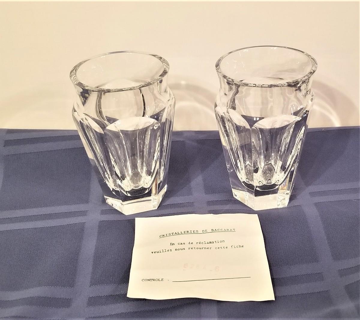 Pair of matching Baccarat Vases - good condition. Each stands 5.25" tall. Comes with paperwork, as shown. Clearly marked.