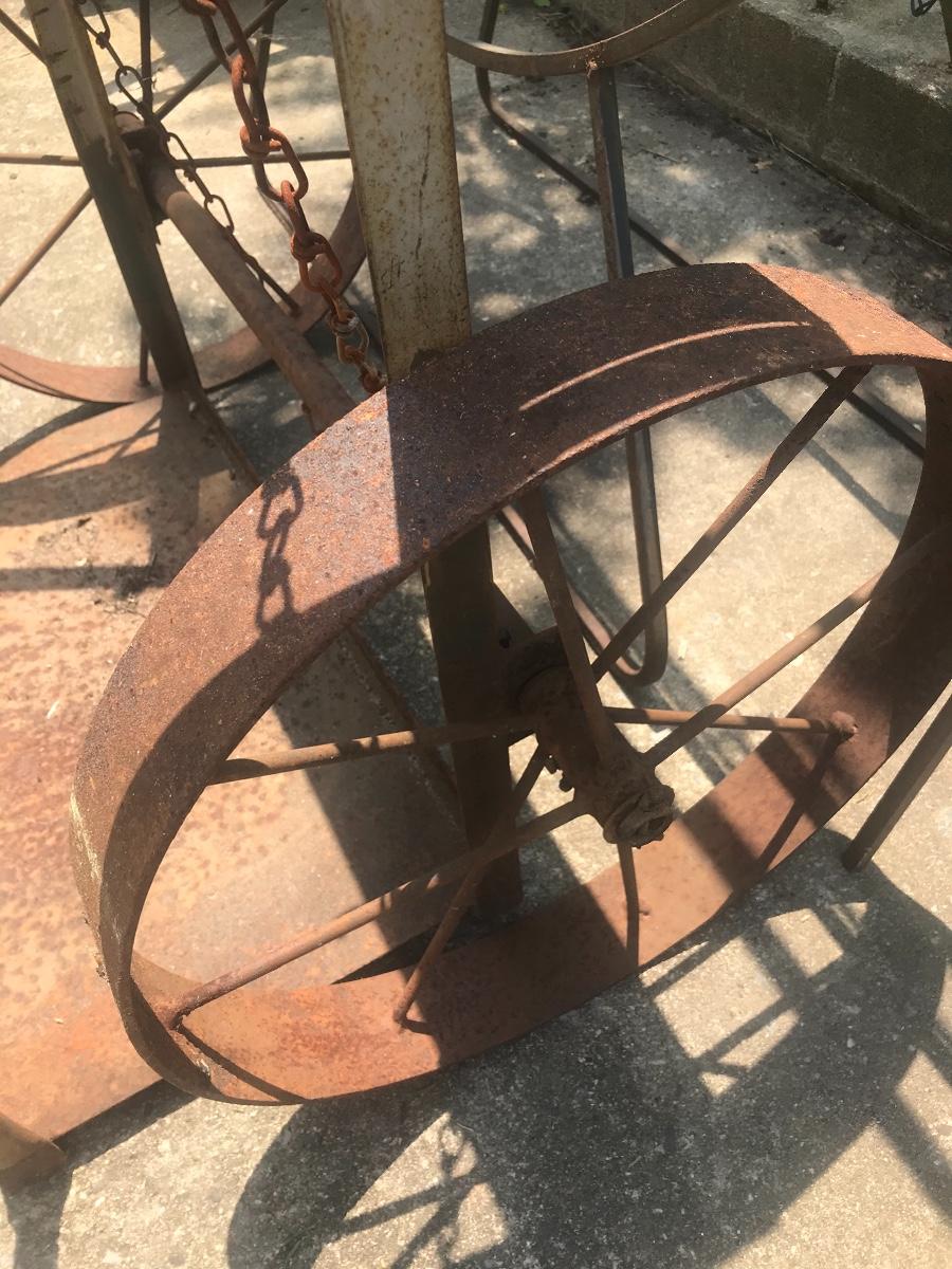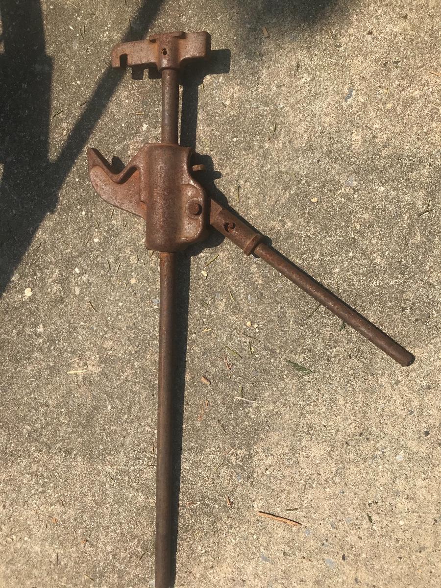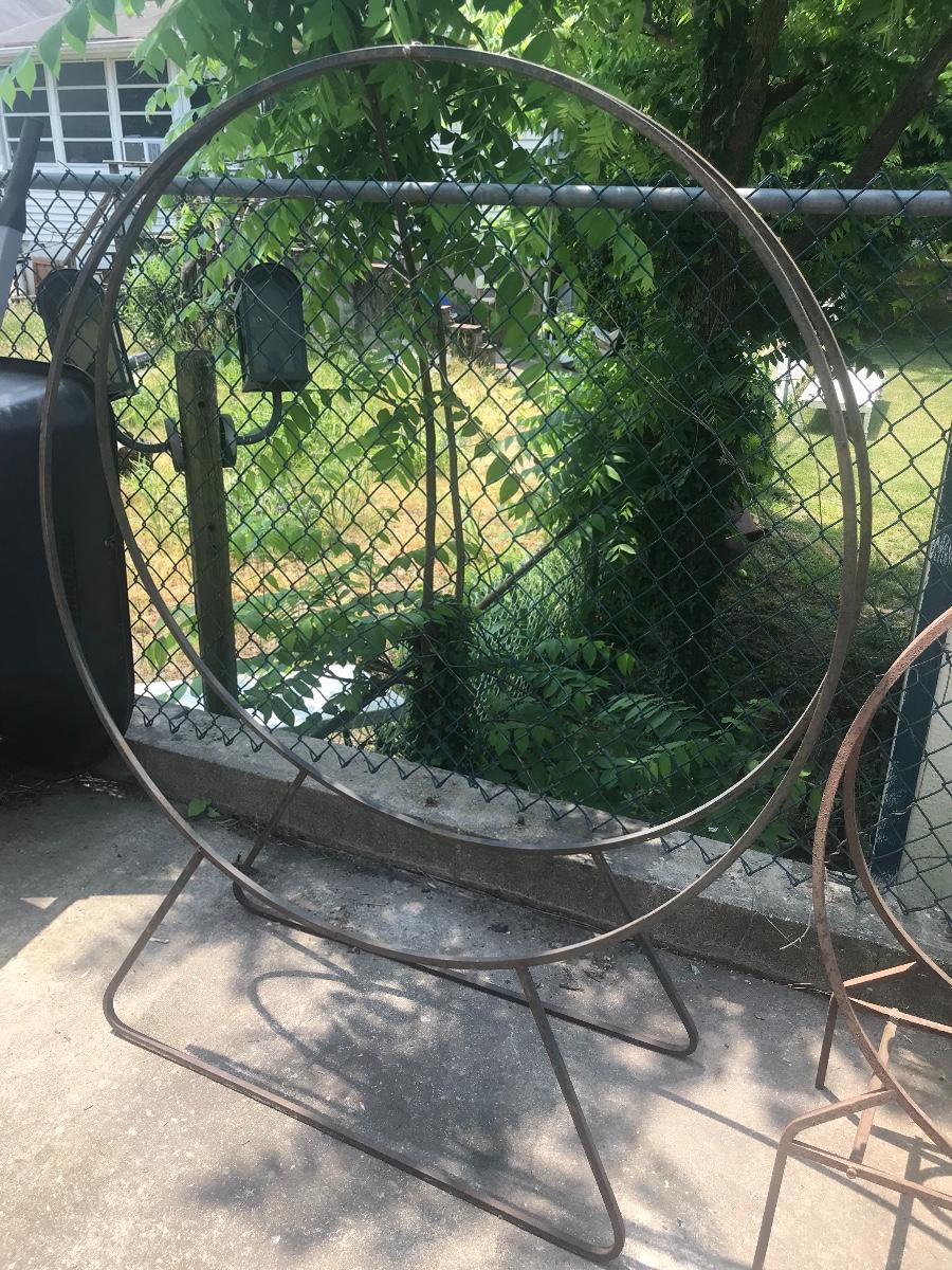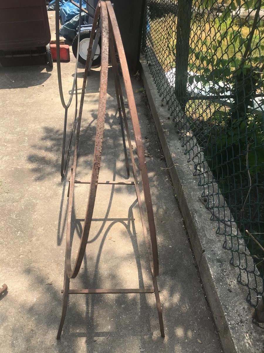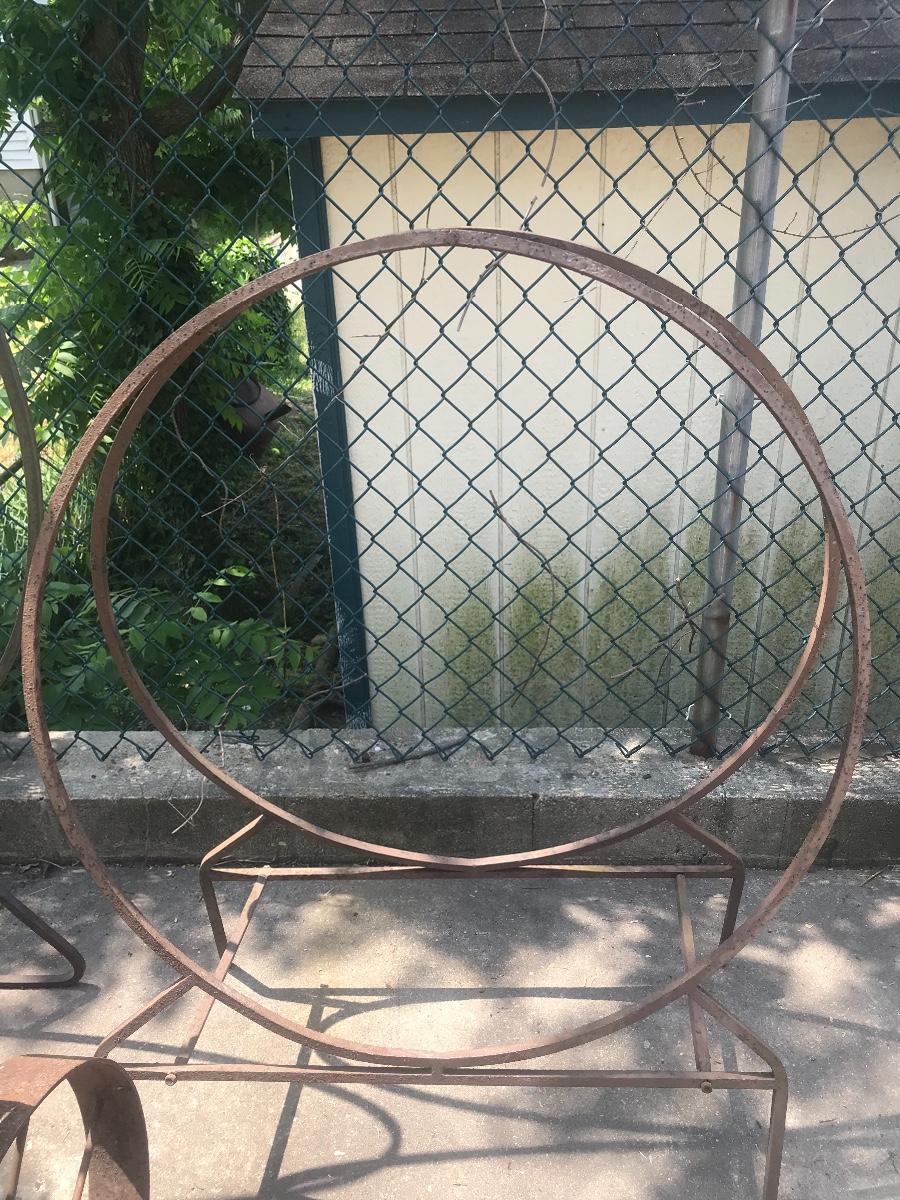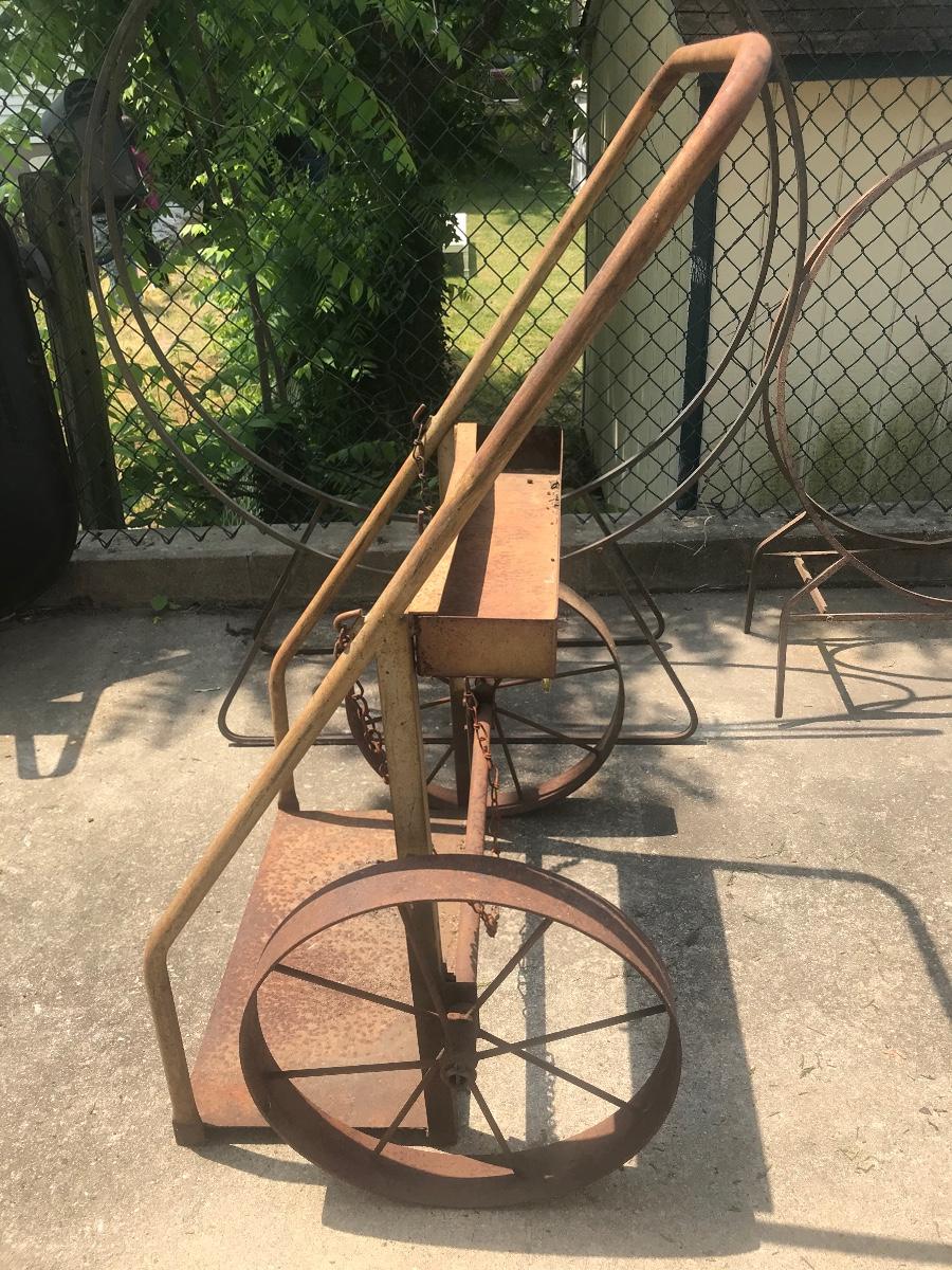 Two log rings, a car jack, and a cart for propane tanks, 29x23x46, that would make a nice planter stand. Please see all pictures for content of the lot, condition of the lot, and measurements if taken. Pictures are the best representation of the items listed and items are untested unless indicated in description. Thank you for looking and have fun bidding!
