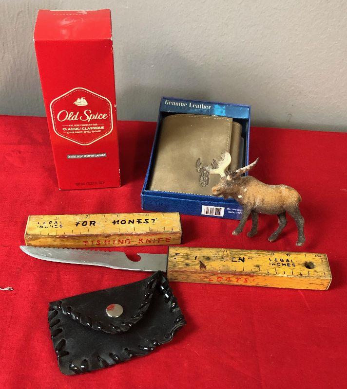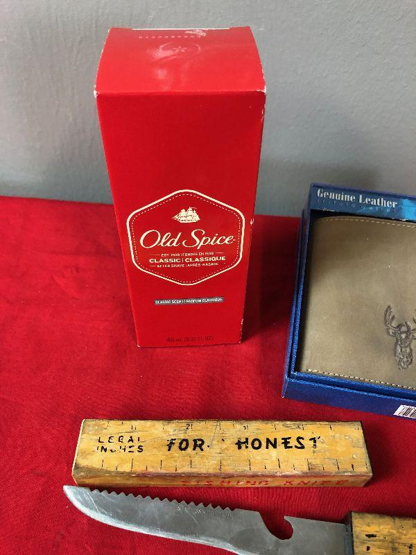 Lot #41 Old Spice, Wallet coin purse and fishing knife