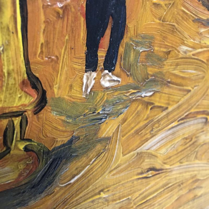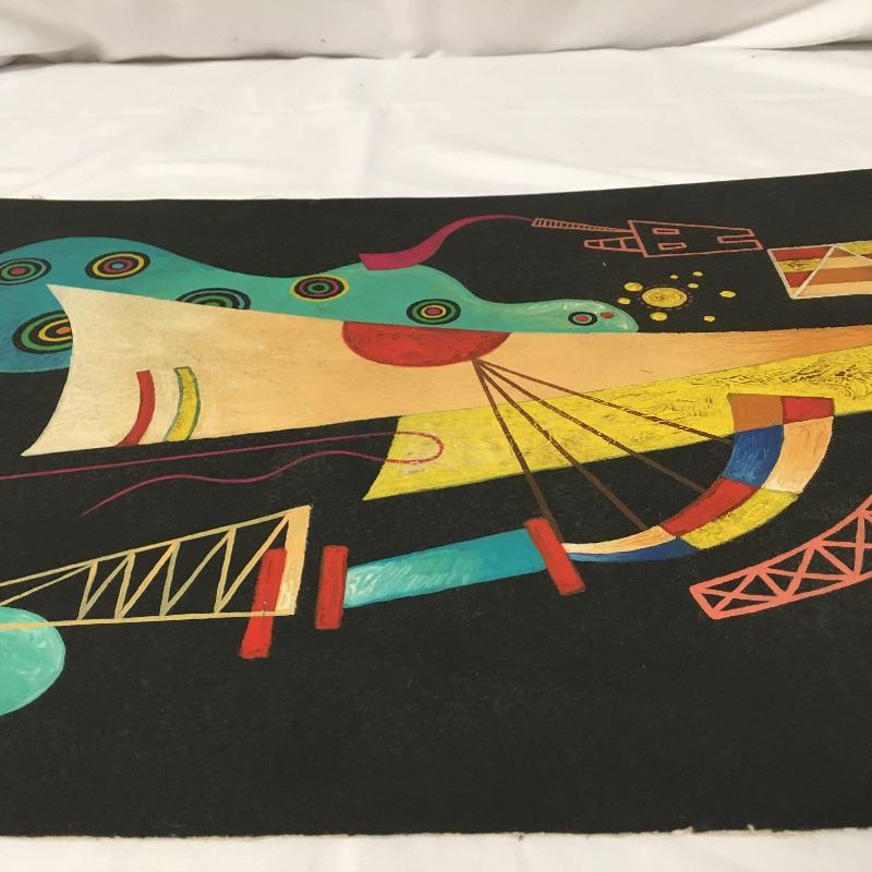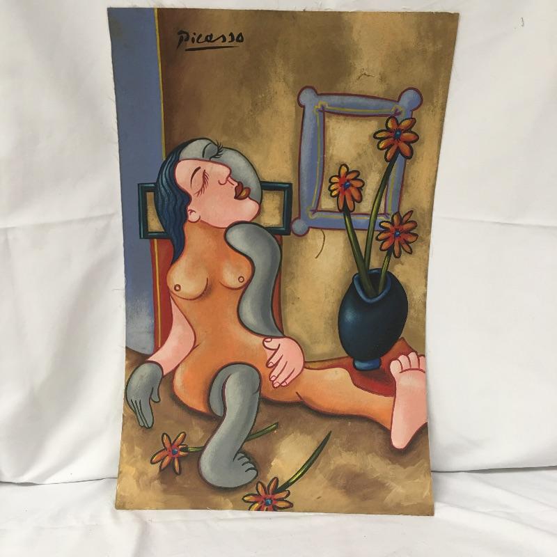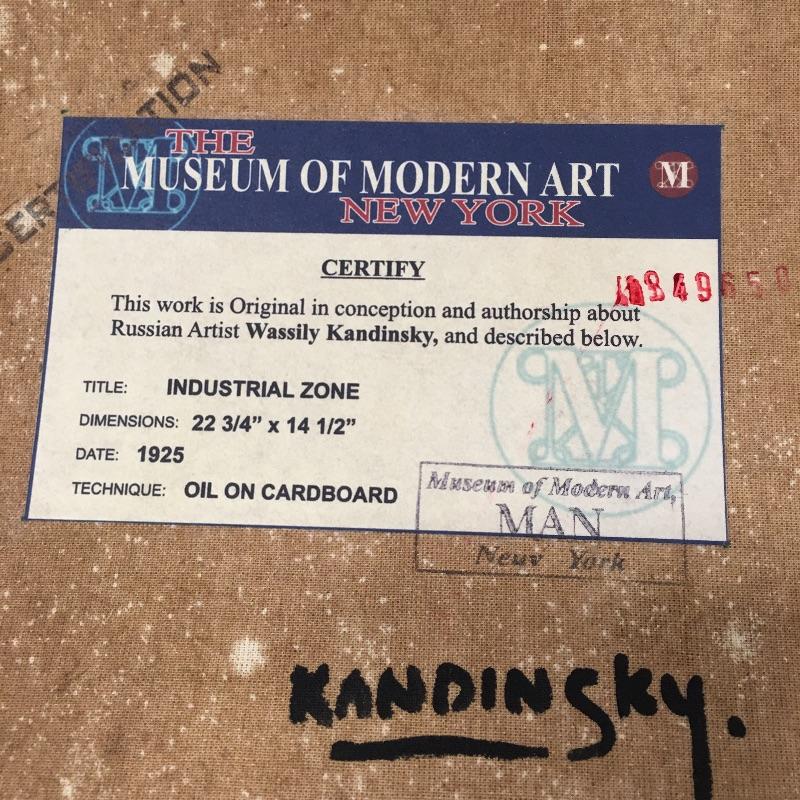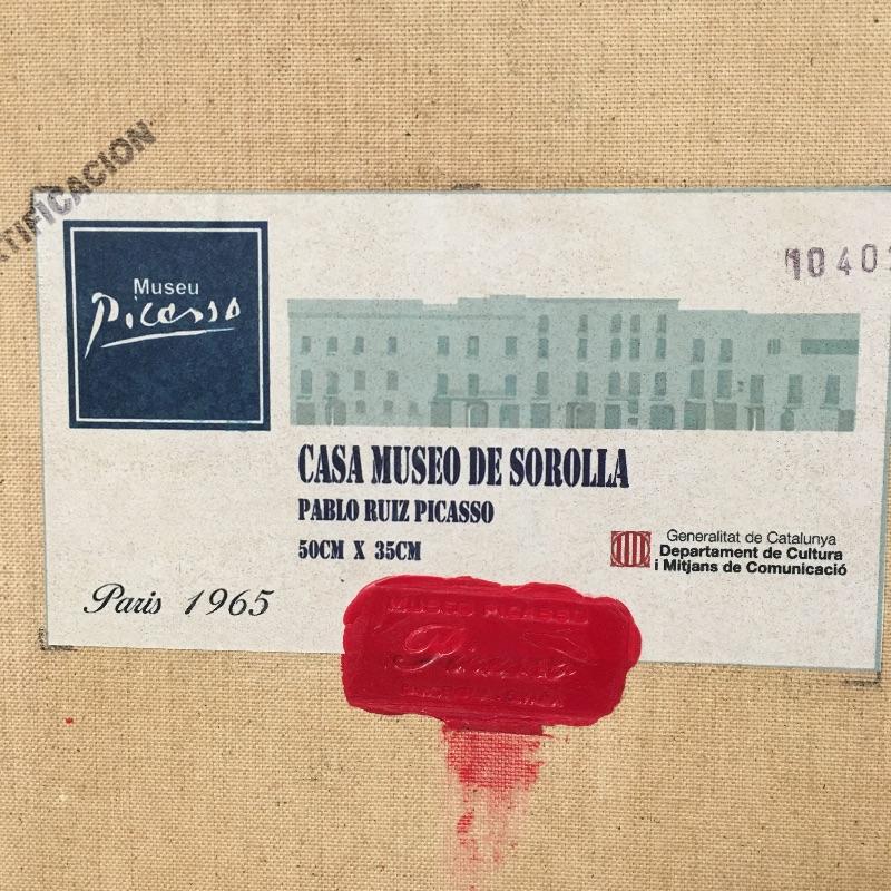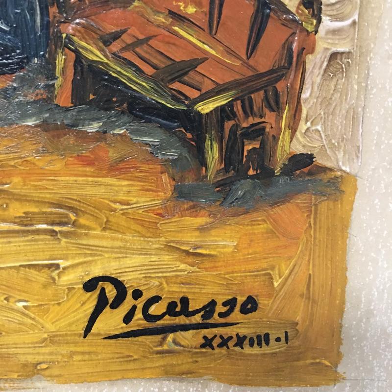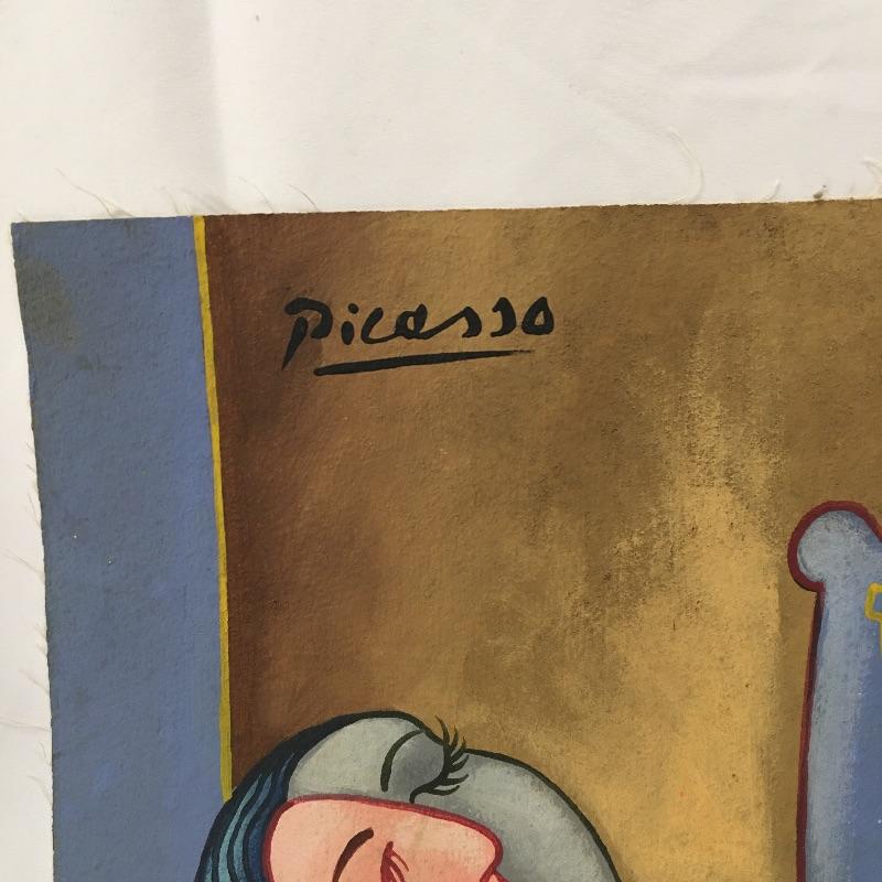 This lot includes two paintings in the style of Picasso that are unframed and stamped from the Casa Museo de Sorolla. Lot also includes a piece in the style of Kandinsky with accompanying paperwork. Largest piece measures 14.5” x 23”.