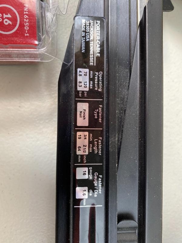 Model FN250B Porter Cable 16 ga. Finish nailer