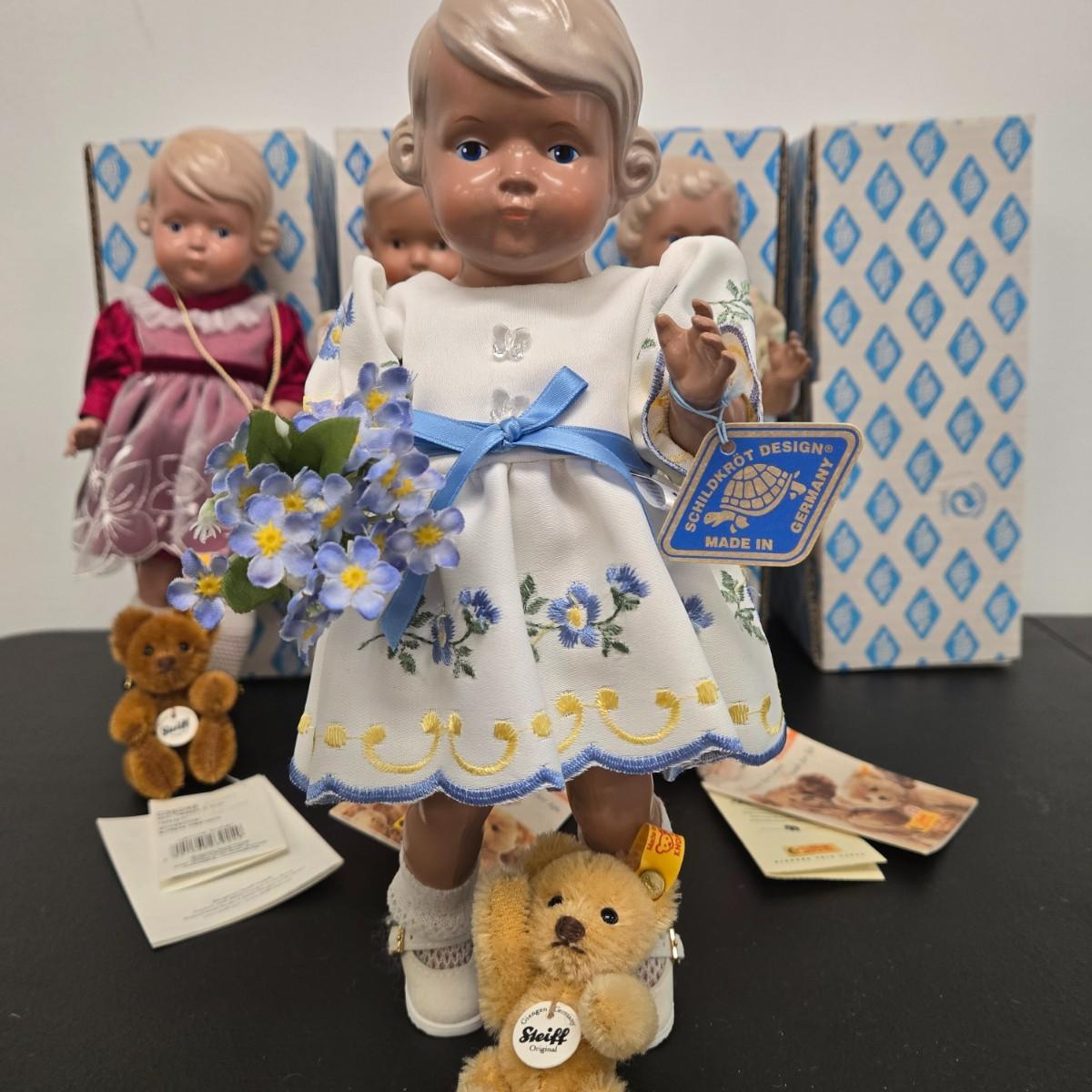 LOT 41: Schildkrot-Puppen Dolls with Their Steiff Teddy Bears