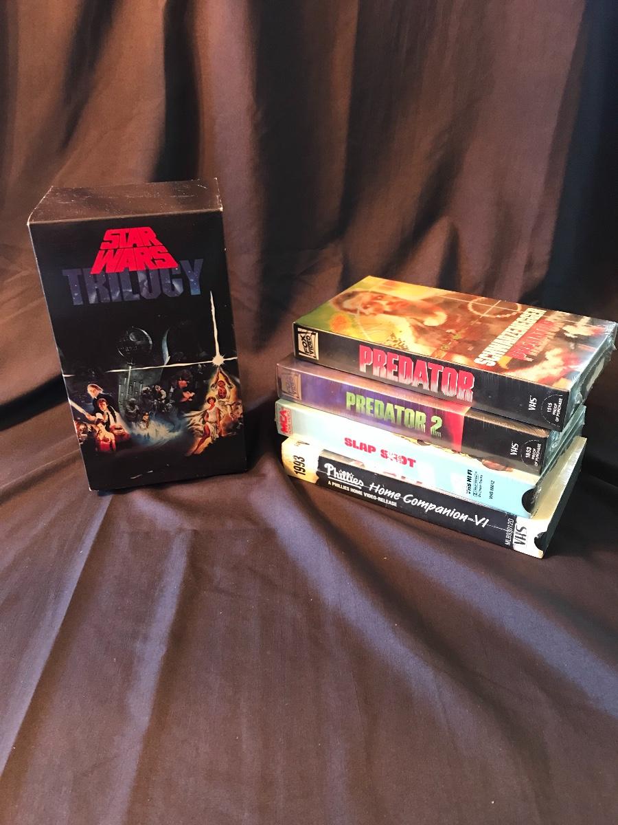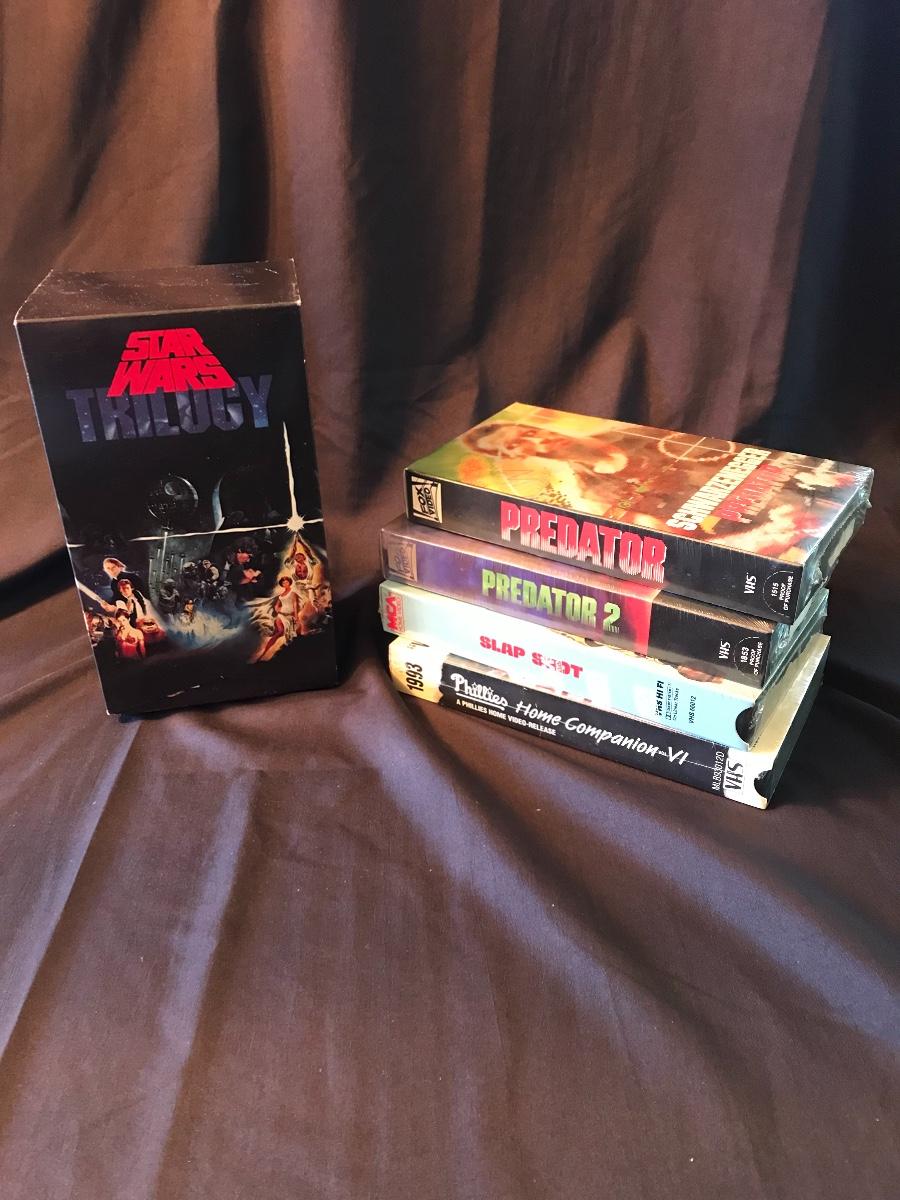 Sealed Vintage VHS - Original Star Wars trilogy in a box set, Predator & Predator 2, Slap Shot and a Philadelphia Phillies video. Please see all pictures as they are the best representation of the items. The pictures show condition, measurements if taken, and what is included in the lot. Due to the large amount that we photograph and the time frame, we are not always able to take measurements. All items unless noted, are pre-owned and have been used. If you purchased furniture, you must bring help. We do not allow one person to carry large furniture out on their own. Bring help, tools and a truck for the safety of our client’s homes, and your personal safety. Company policy. Thank you.